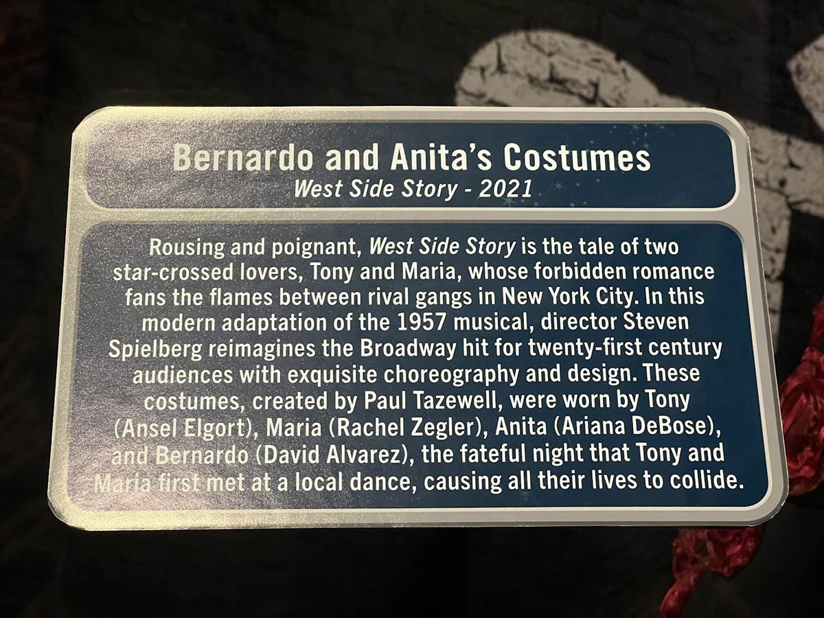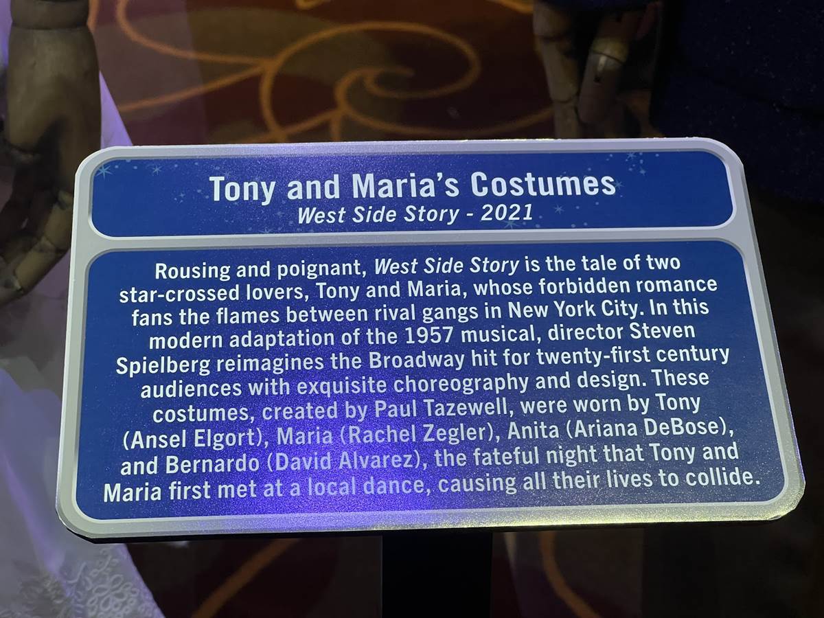 One of those displays now features costumes from the Disney-Owned 20th Century Studios film from iconic director Steven Spielberg, West Side Story.