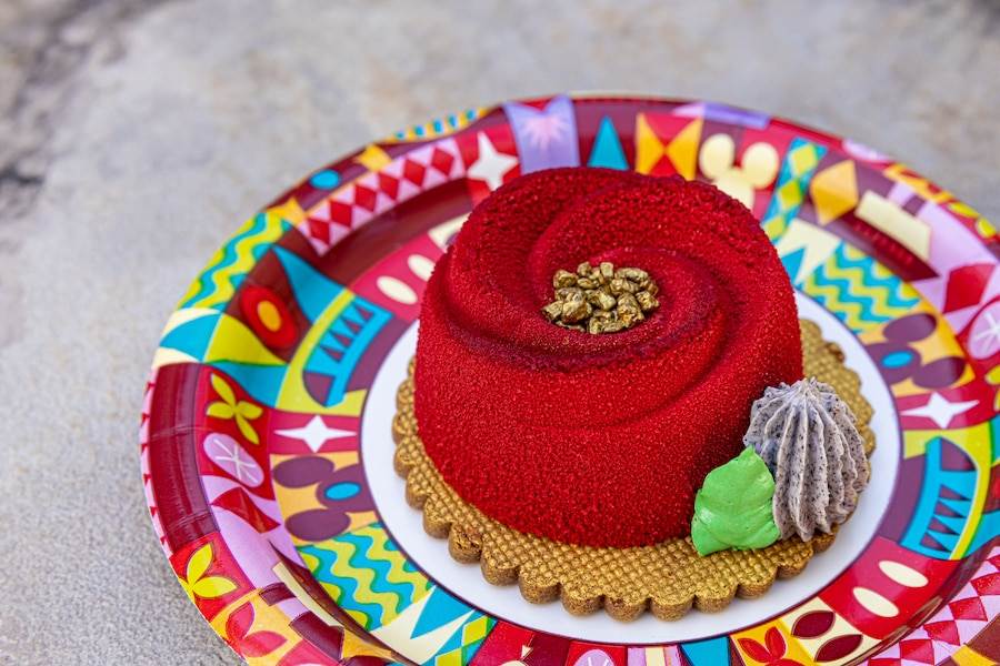 If you’re interested in a treat that’s inspired by a tale as old as time, the Beauty and the Beast Rose at Catalina Eddie’s is just for you! This dark chocolate mousse with a taste of black currant and Morello cherry sits atop a chocolate shortbread cookie, whipped cookies, and cream fluff, and is gorgeously topped with gilded chocolate-covered cocoa nibs.