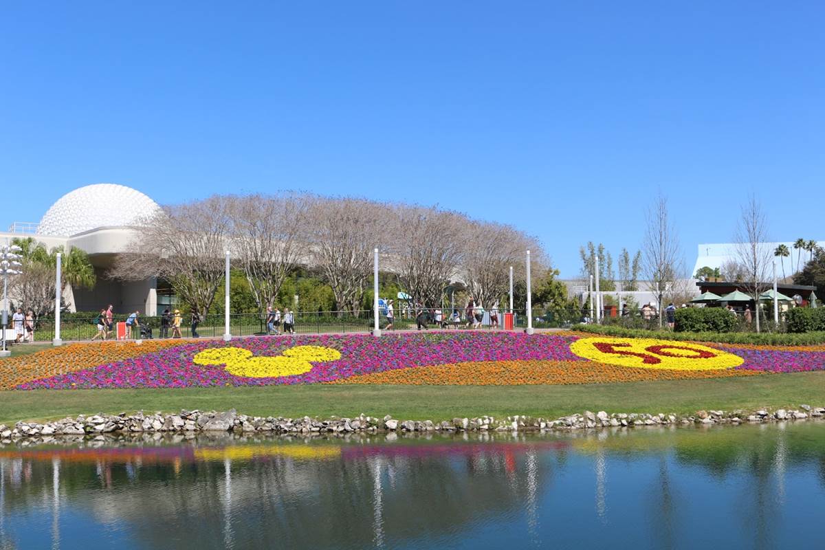 The rest of the former Future World seems to have a little less going on than in year’s past, at least in the way of topiaries. You do have the Fab 5 (minus Goofy) featured in a display directly in front of the construction in the center of the park, as well as a second 50th anniversary floral mural.