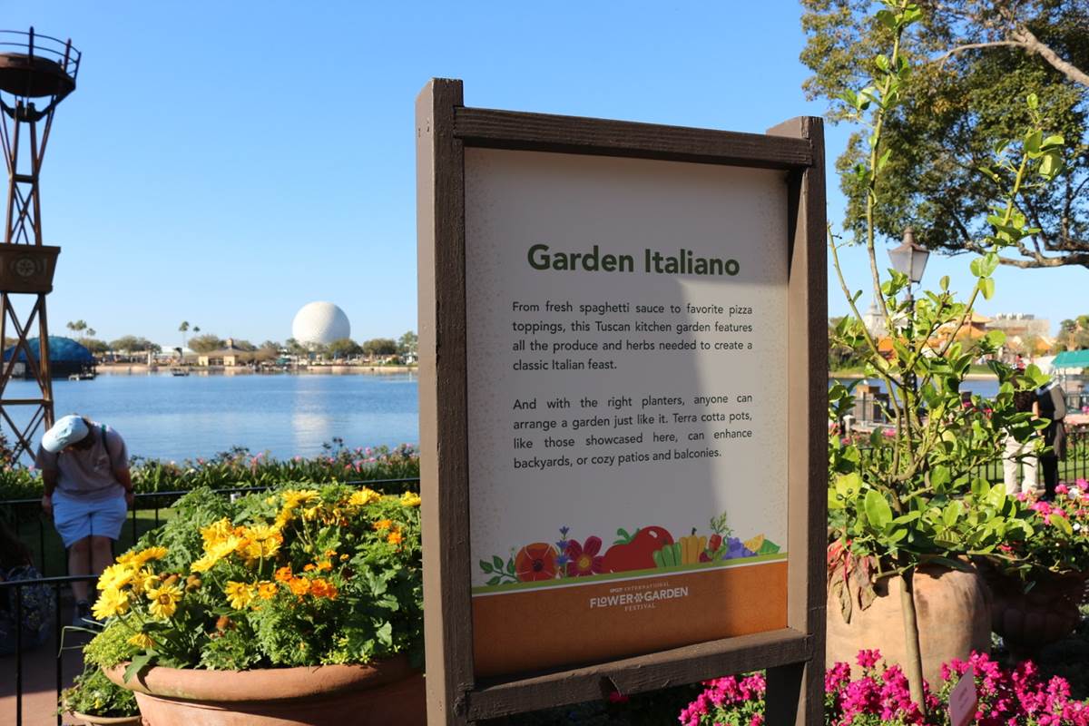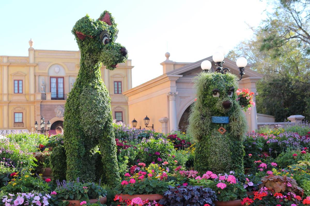 Over in Italy, we can find an abundance of potted plants with Lady and the Tramp in the central plaza area, while the area near the docks and canals features “Garden Italiano.”