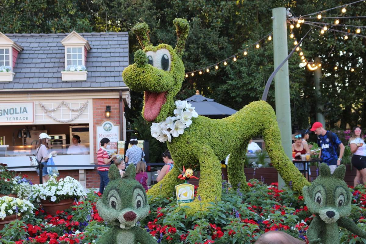 Pluto, along with Chip and Dale, have taken up residence at The American Adventure this year, just in front of the Magnolia Terrace food booth.