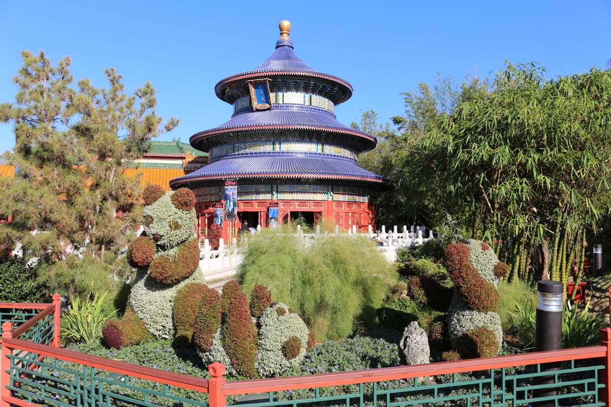In the France Pavilion, you can see Remy beckoning towards his new attraction, Remy’s Ratatouille Adventure, as he stands atop some cheese. Remy in topiary form has actually become a somewhat permanent part of the pavilion, likely remaining in celebration of his new attraction. Elsewhere in the pavilion, you’ll find Belle and the Beast, along with Lumiere and Cogsworth, outside the theater where their sing-along film, as well as the classic Impressions De France, are shown.