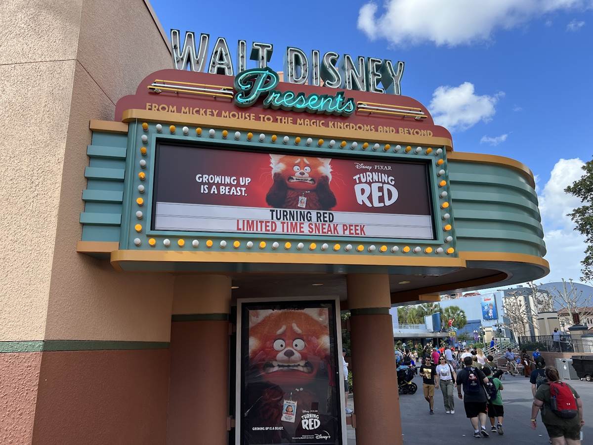 Though being released directly on Disney+, Disney’s Hollywood Studios is giving a chance to at least see a portion of the latest Pixar Animation Studios film, Turning Red, on a big screen in the theater at the end of the Walt Disney Presents walk-through exhibit with a limited time Sneak Peek at the film.