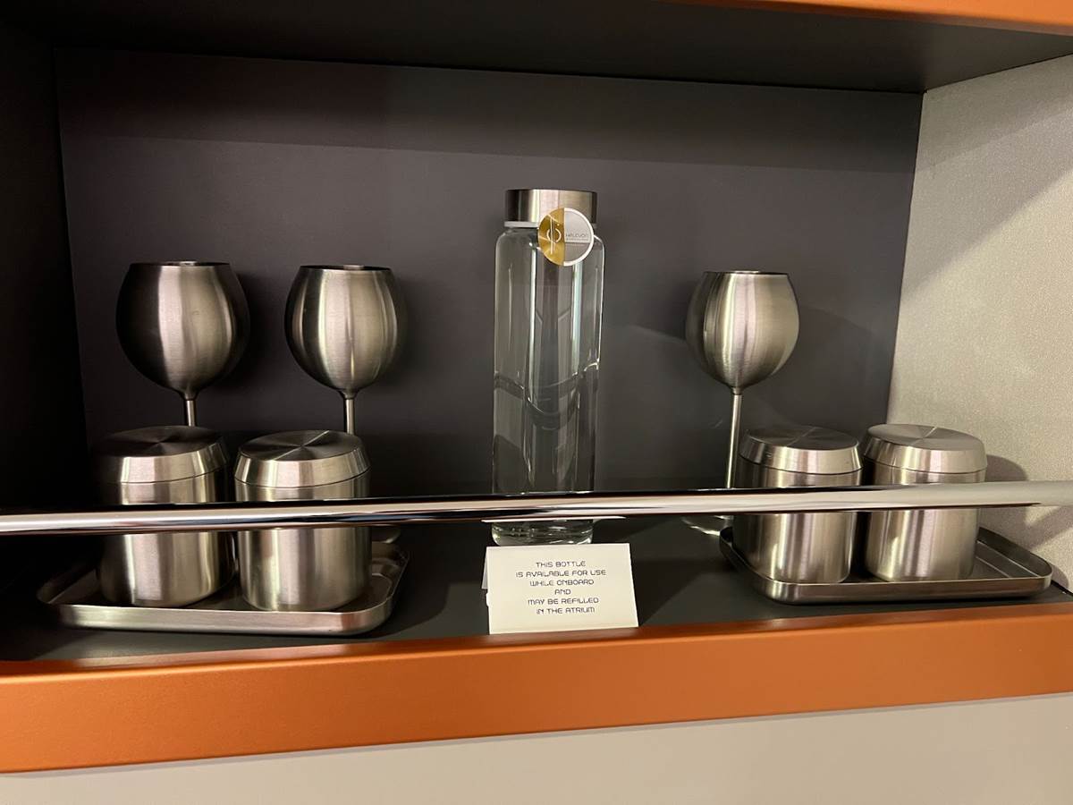 - Guests can enjoy the treats from that welcome package with the themed drinkware provided in the room.