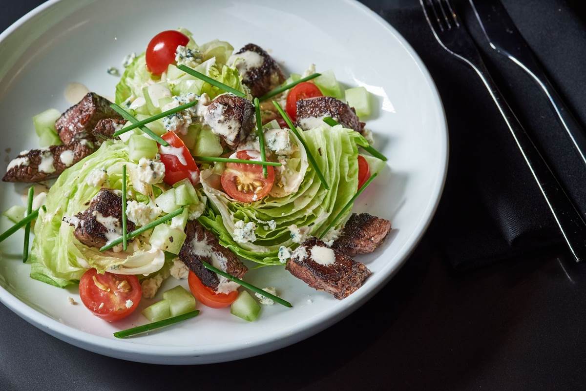 - Steak Salad - Marinated Filet Tips, Iceberg Wedges, Cucumber, Cherry Tomatoes, Chives, Blue Cheese Crumble and Horseradish Dressing. Available as a Star Course (Entrée) option for lunch only.