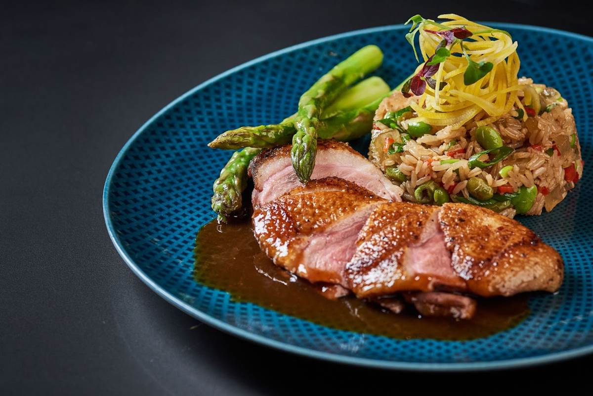 - Space Glazed Duck Breast - Fried Jasmine Rice, Asparagus, Pineapple and Orange Hoisin Sauce. Available as a Star Course (Entrée) option for dinner only.