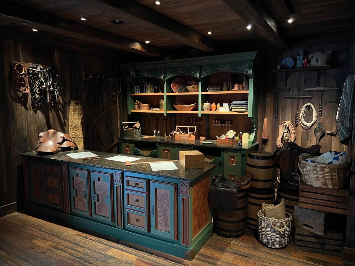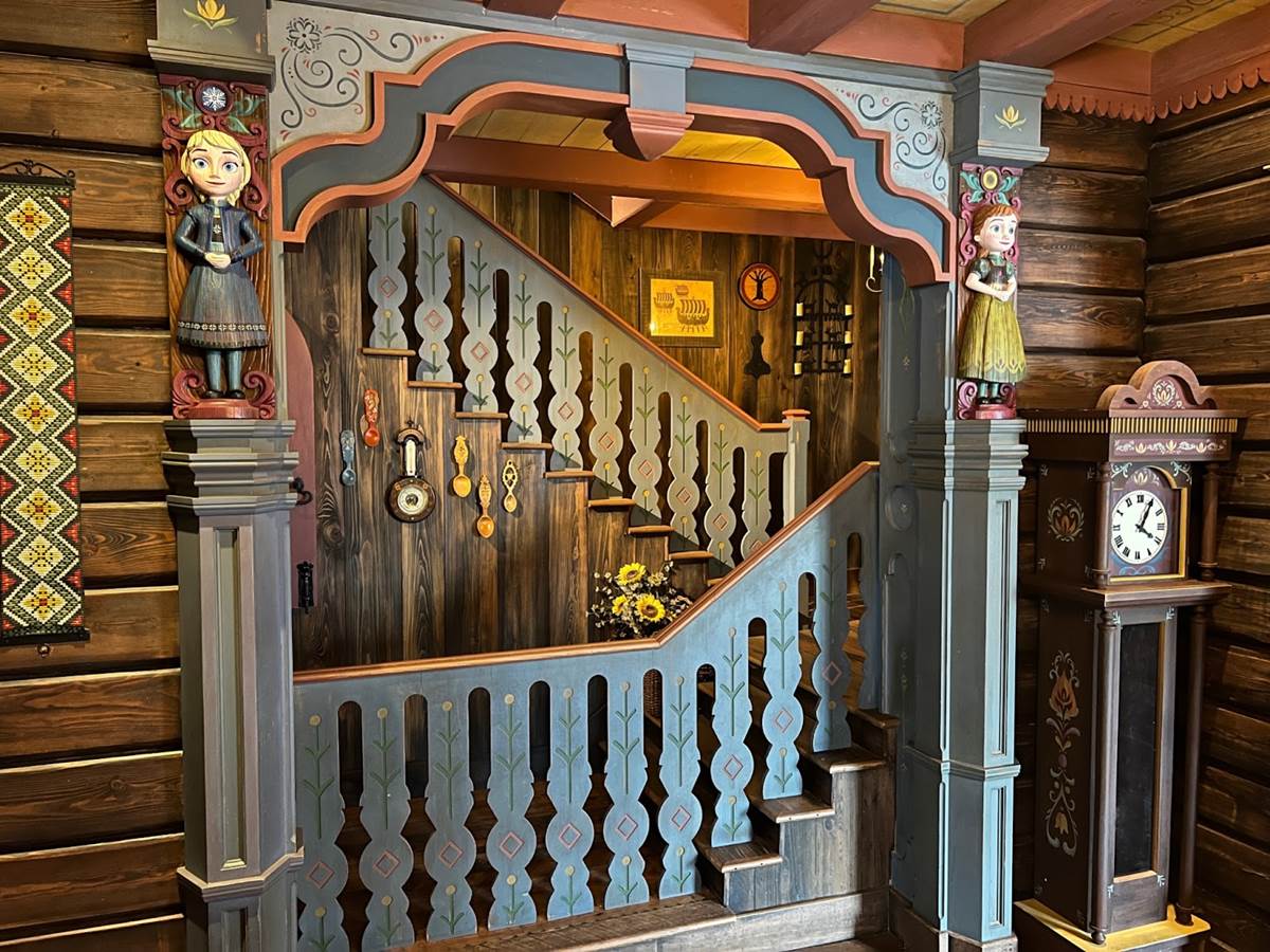 The interior of the Royal Sommerhus features some wonderfully intricate details, such as the totems of young Anna and Elsa.