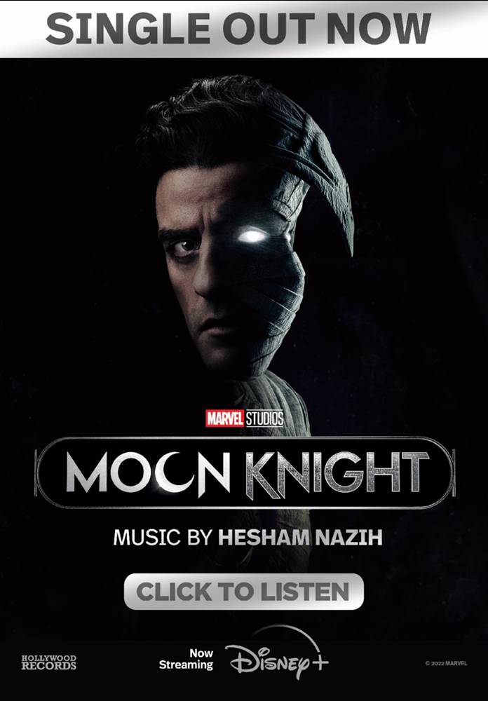 From the new Marvel Original series on Disney+, Moon Knight, you can now listen to a piece of music from the series streaming now from Hollywood Records.