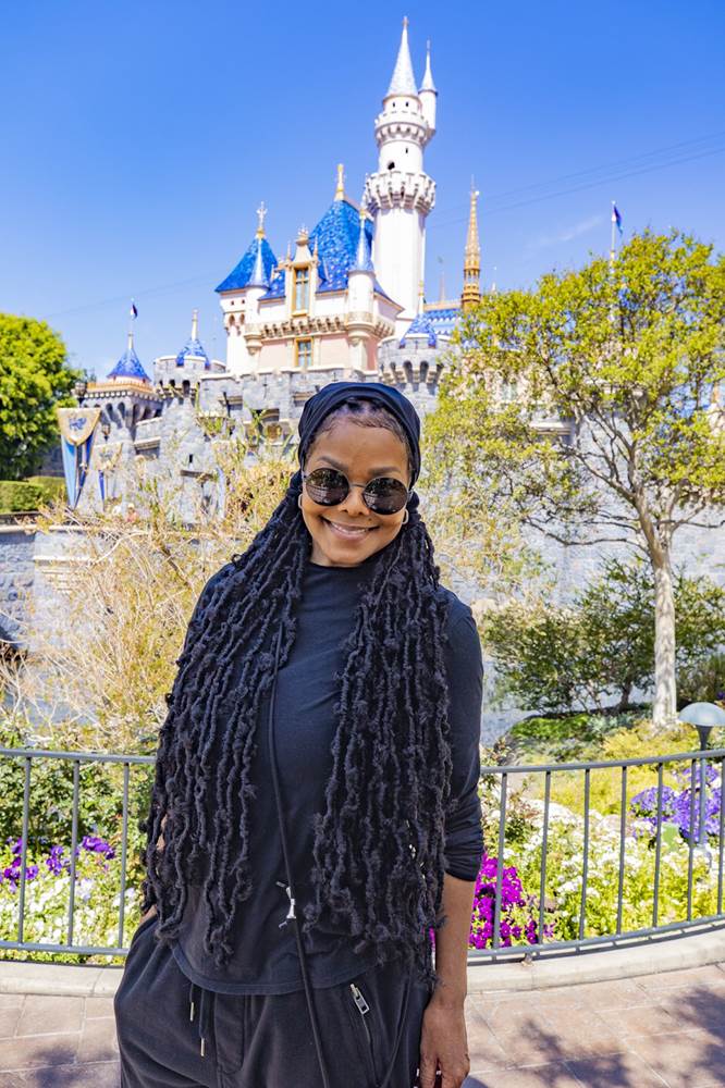 Superstar Janet Jackson recently visited the Disneyland Resort and posed for a photo in front of Sleeping Beauty Castle.