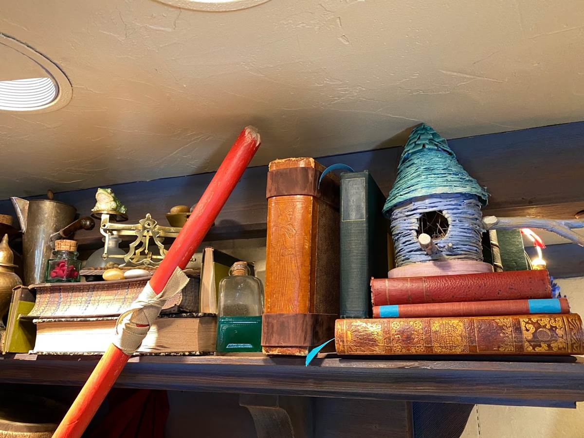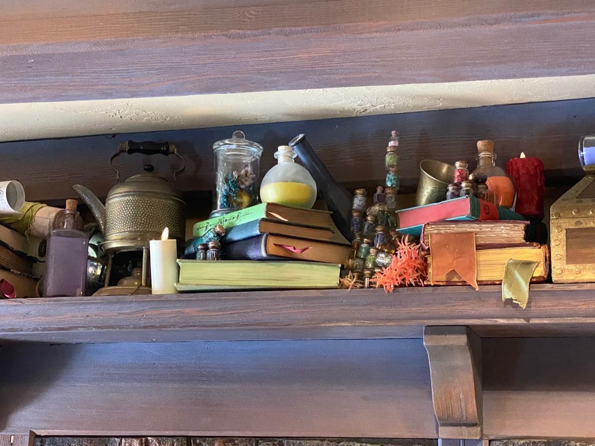 The shop is filled to the brim with artifacts and potions, and really anything you’d find lying around Merlin’s house.