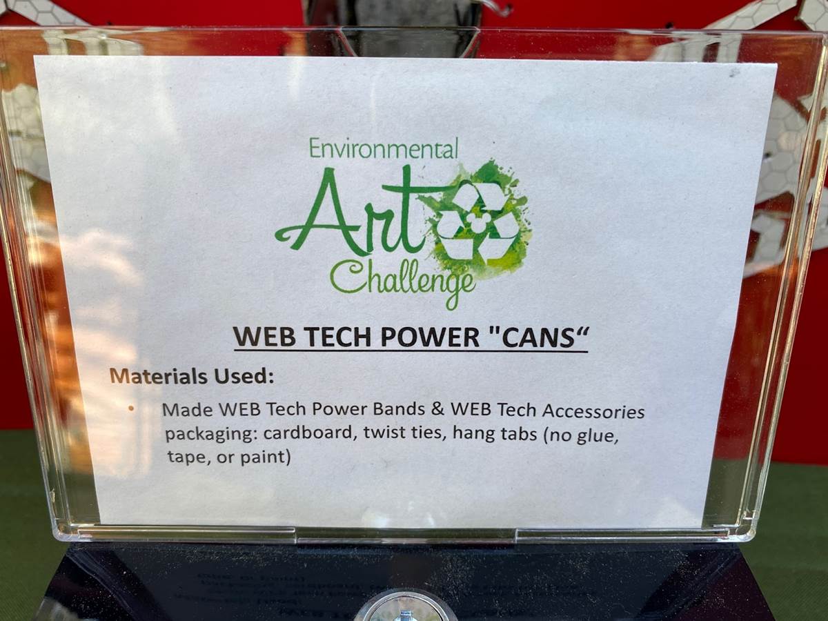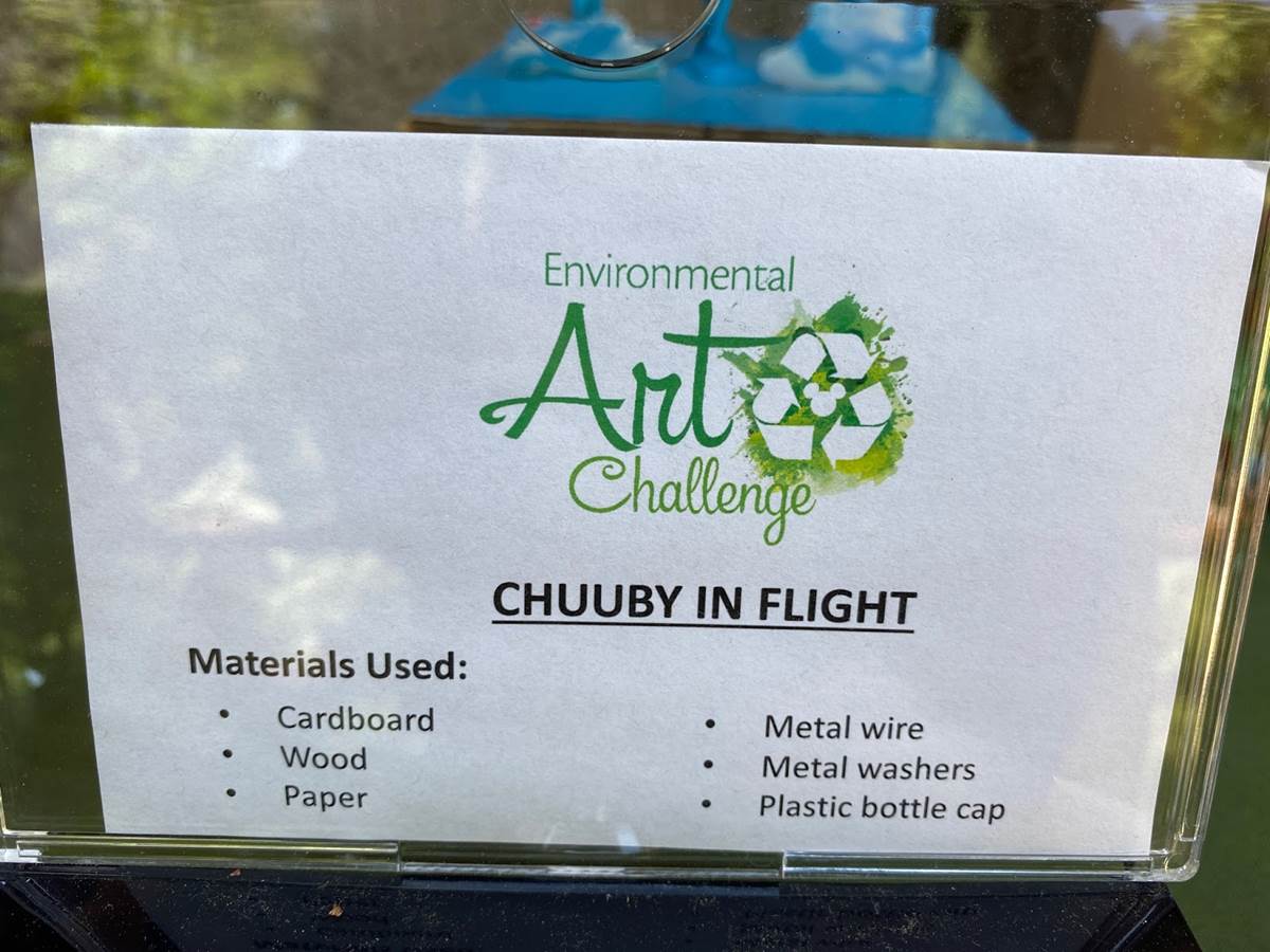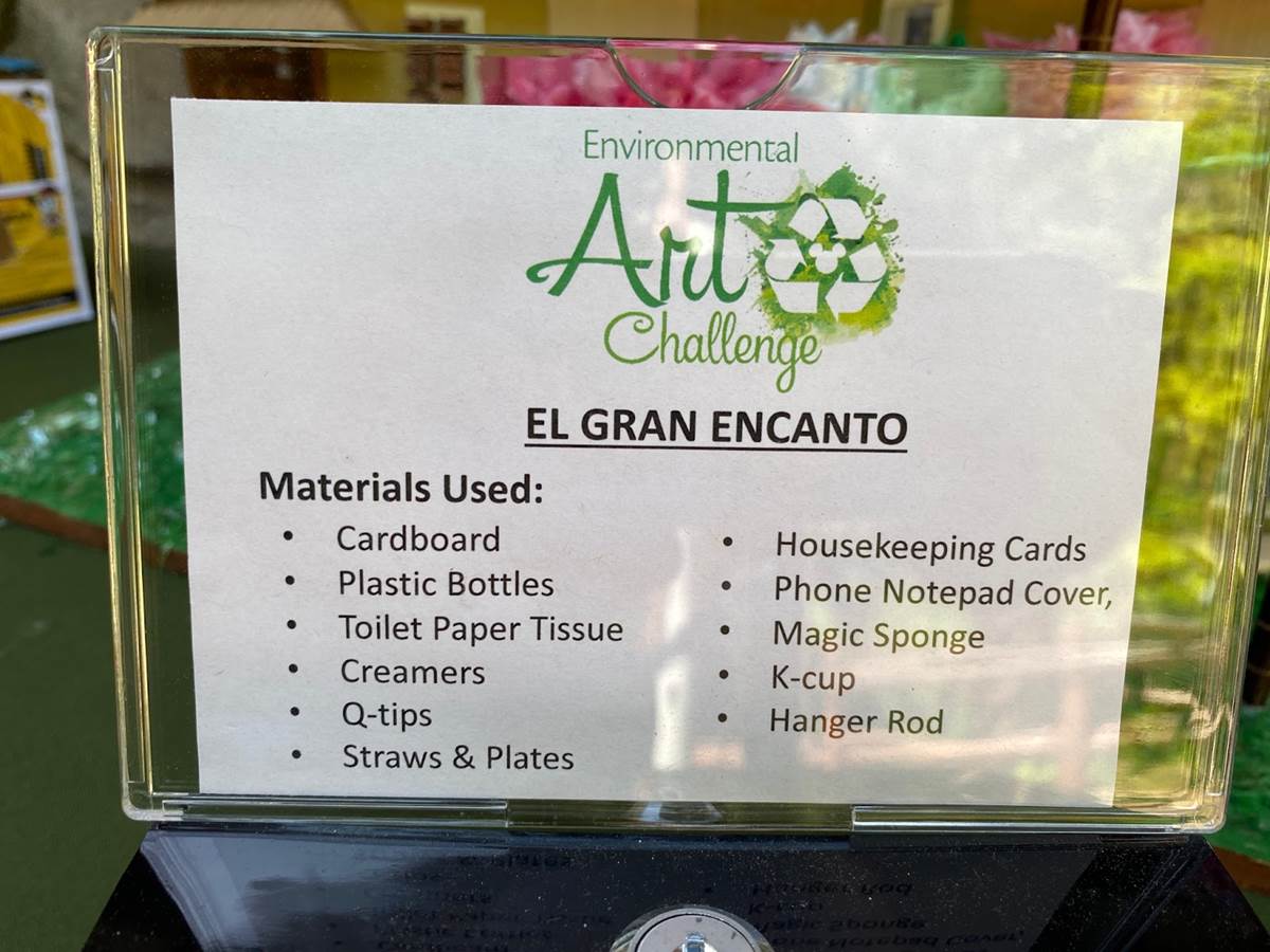 Underneath each picture of the various art pieces is a separate photo that explains what materials were used in the piece’s creation.