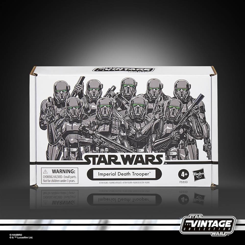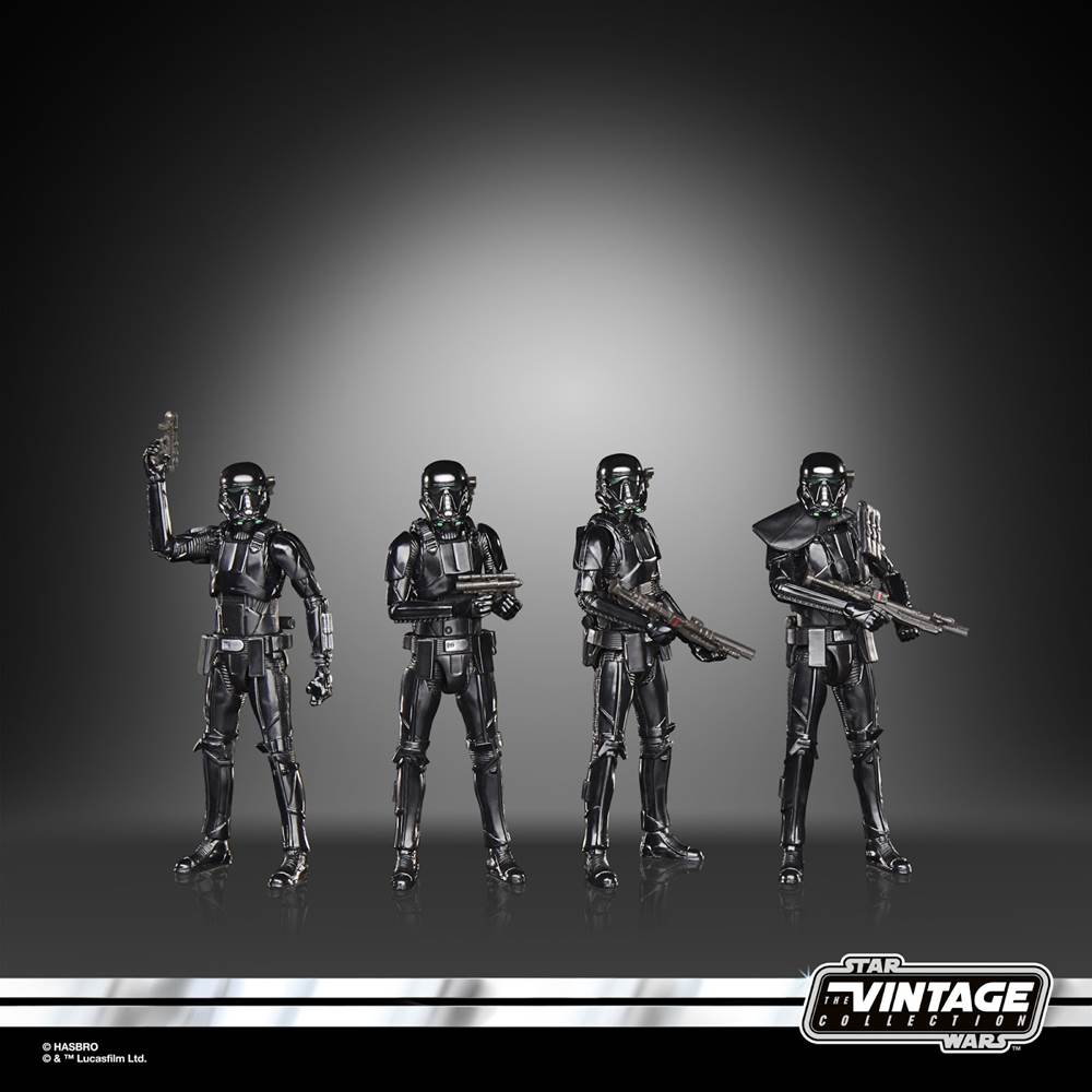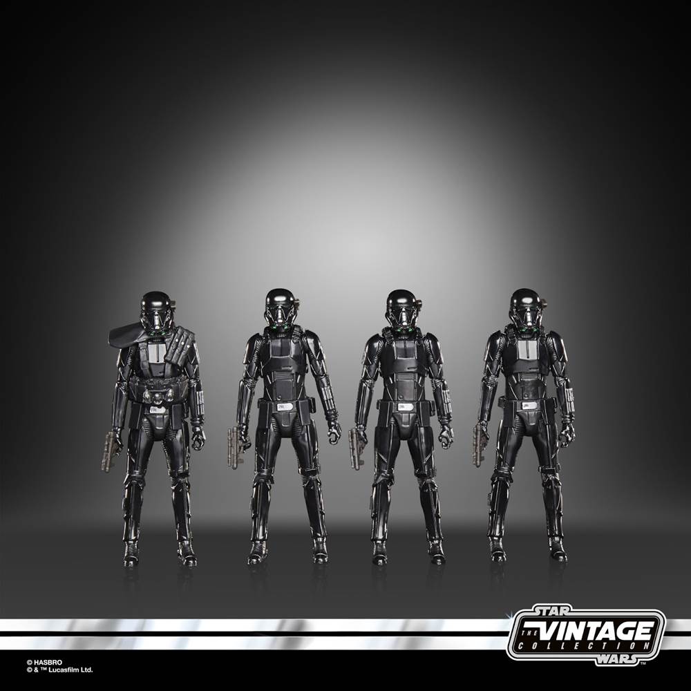 STAR WARS: THE VINTAGE COLLECTION 3.75-INCH IMPERIAL DEATH TROOPER 4-PACK ($44.99 / Fall 2022) - “STAR WARS: THE VINTAGE COLLECTION 3.75-INCH scale classic figures and vehicles feature original vintage-inspired packaging and Kenner branding. This STAR WARS: THE VINTAGE COLLECTION 3.75-INCH IMPERIAL DEATH TROOPER 4-PACK is inspired by the characters in STAR WARS entertainment. Elite Imperial soldiers, death troopers wear specialized stormtrooper armor with a dark, ominous gleam. They serve as bodyguards and enforcers for Imperial figureheads. Highly poseable with realistic detail, these 3.75-inch-scale figures can be displayed in action figure and vehicle collections. Includes 4 Imperial Death Trooper figures including 1 captain and 6 accessories.” (Hasbro Pulse exclusive)