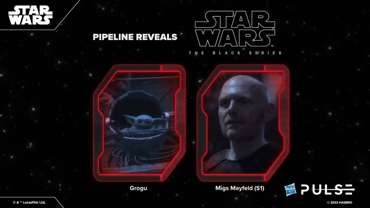 And pipeline reveals for the Black Series included Grogu in his floating pram and Migs Mayfeld in his season 1 outfit, both from The Mandalorian.