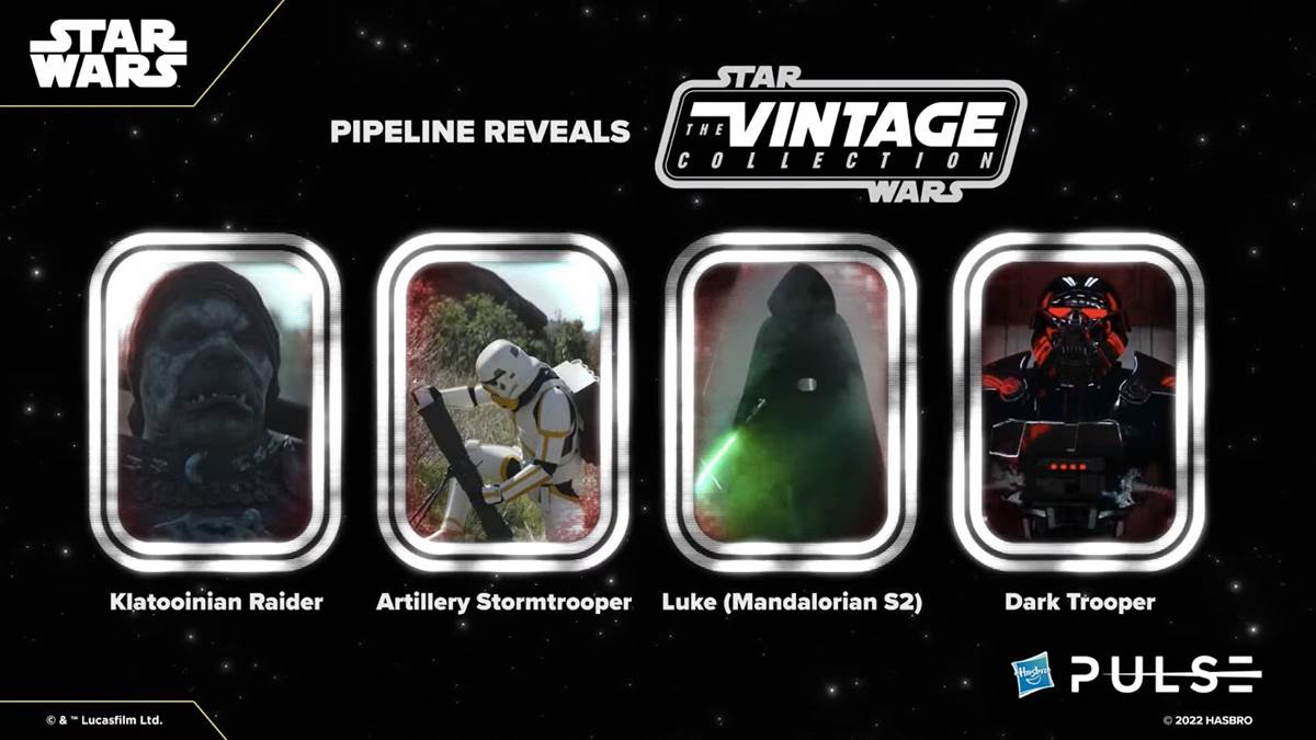 Coming down the pipeline from the Vintage Collection will be a Klatooinian Raider, Artillery Stormtrooper, Luke Skywalker, and a Dark Trooper, all from the hit live-action Disney+ Star Wars series The Mandalorian.