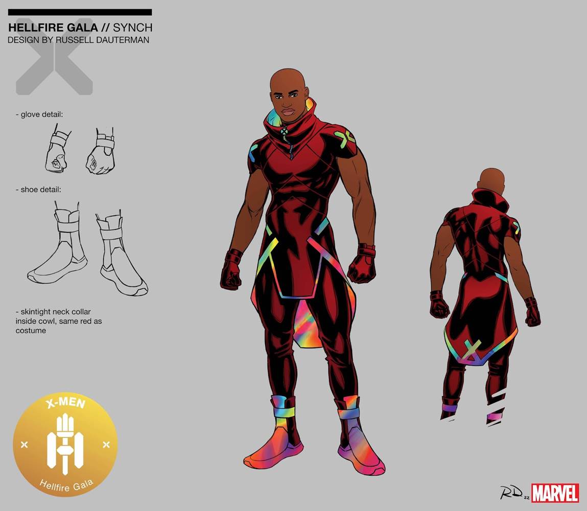 - Artist Russell Dauterman: “I’m so thrilled to do all this design work! My general thought with the Gala designs is that they should be high fashion super hero costumes — looks that reflect the characters’ personalities, and could work on a runway or a battlefield.”