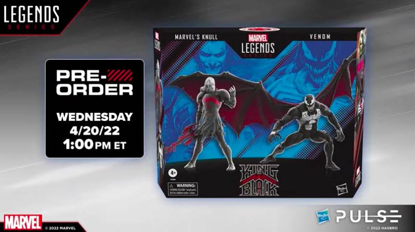 - This two-pack of impressive figures ripped right out of the pages of the “King in Black” comic event, will be available for pre-order at 1 PM ET tomorrow (4/20/22) on Hasbro Pulse for $77.99 and will ship in December 2022.