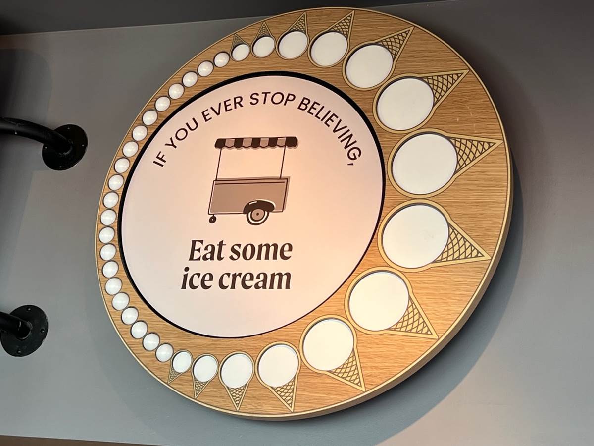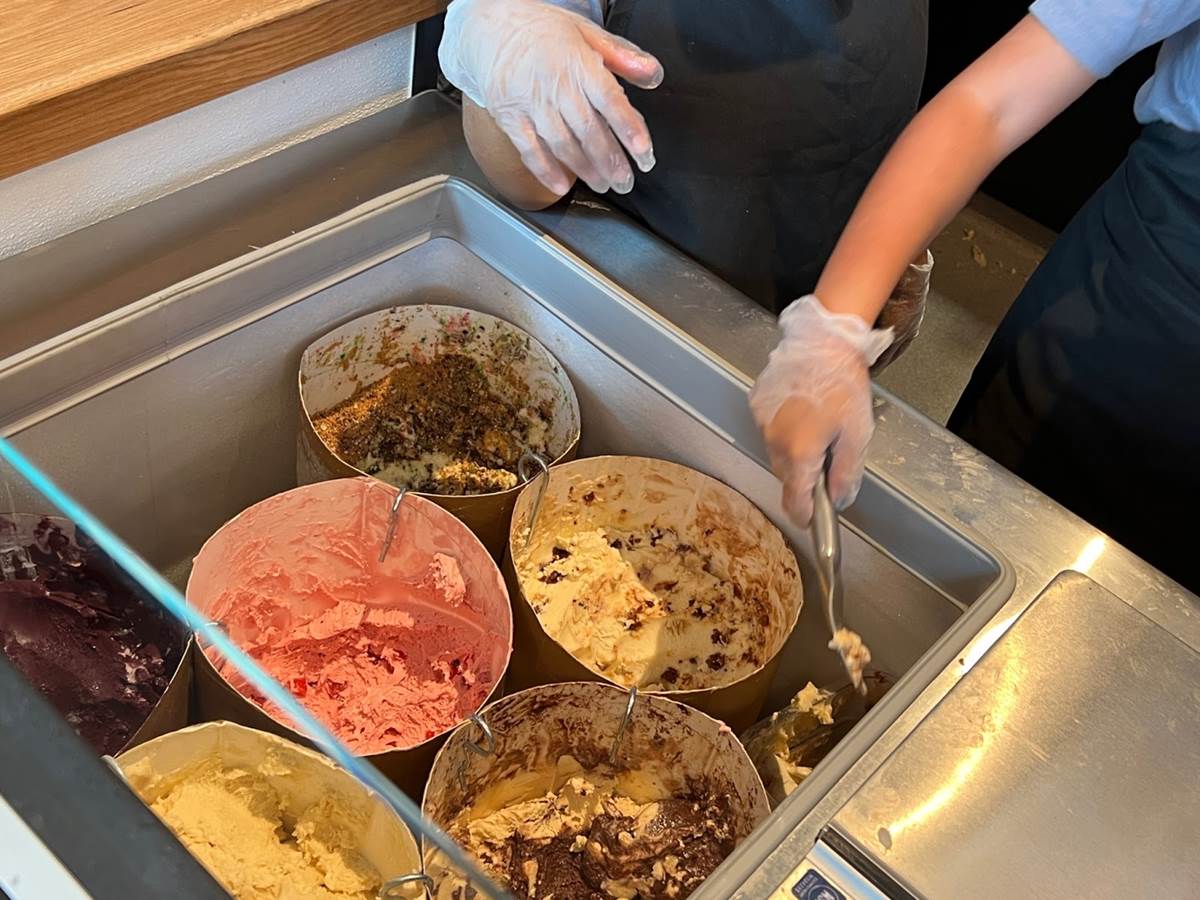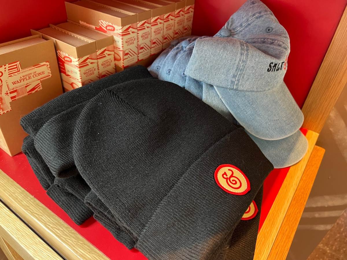 In addition to selling ice cream, you can also buy some specialty merchandise items inside, such as this ice cream cookbook.