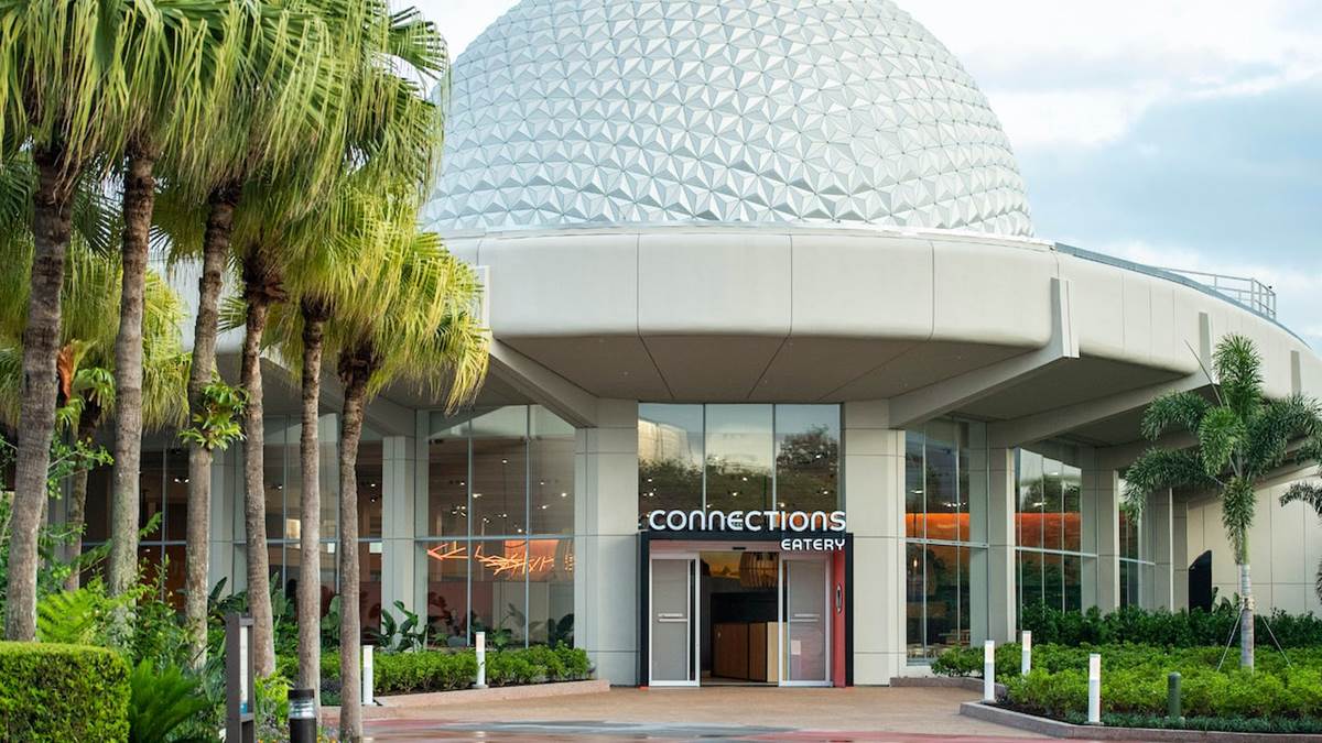 - If you’re walking past Spaceship Earth on your way into the park, you’ll find Connections Café and Eatery on the left-hand side, in the former home of Electric Umbrella.