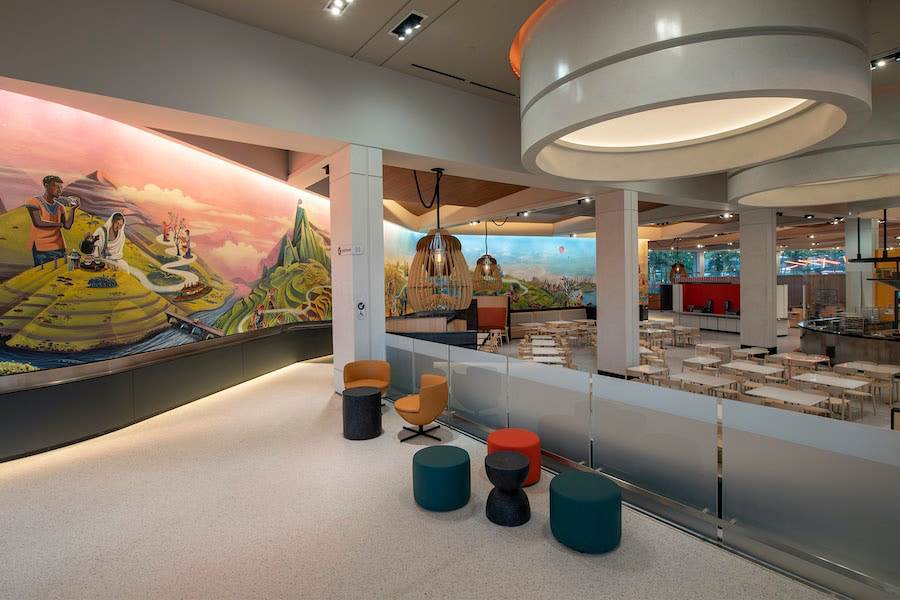 - As part of the eatery’s interior decor, there is a giant mural called “Global Gathering.” This magnificent piece of art depicts the heart of this restaurant – people from around the world gathering around food. It’s one of the largest murals Walt Disney Imagineering has ever created, and if you look closely, you’ll notice the scenes blend seamlessly from sunrise to sunset.