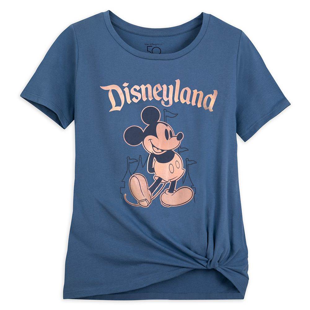 - Landing on shopDisney today, this deep dusty blue top is perfectly accented with shimmering golden letters and Mickey Mouse icon to commemorate 50 years of the Most Magical Place on Earth.