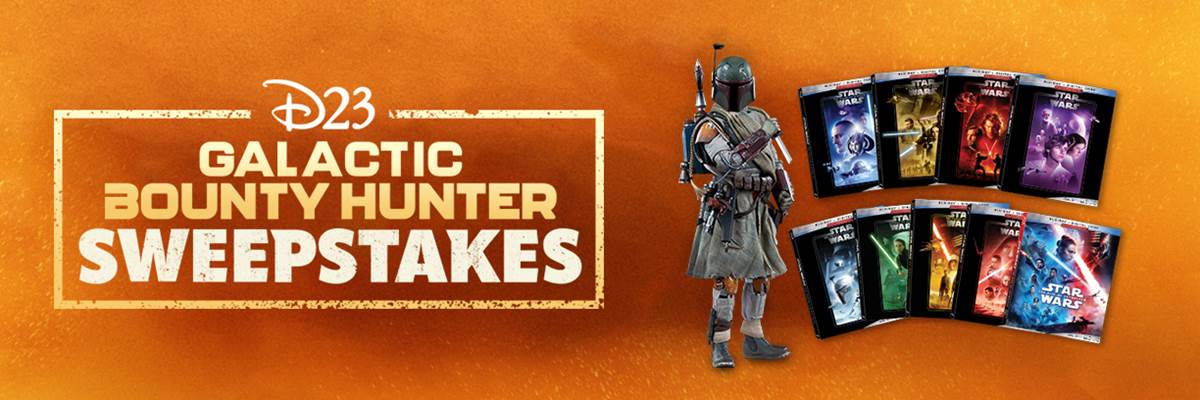 One lucky D23 member will be the proud winner of a new Boba Fett Sixth Scale Figure from Sideshow, as well as the complete collection of the Skywalker Saga on Blu-Ray with D23’s Galactic Bounty Hunter Sweepstakes.