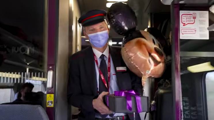 - Travelers were treated to messages from Mickey, a show on board the train, cakes, gifts and more.