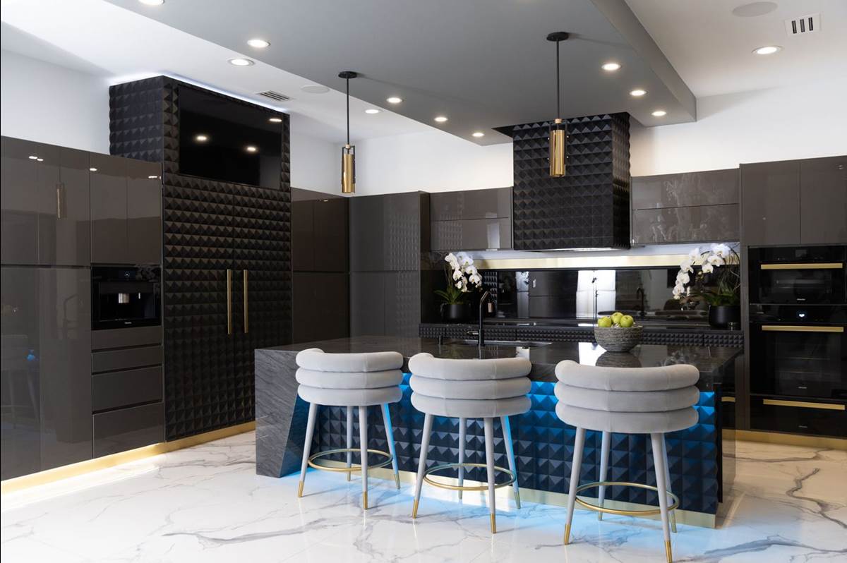 - The kitchen’s design took notes more directly from the film, borrowing from an aerial security transport spaceship known as the Recognizer; a satin-black diamond-panel exhaust system was designed to resemble the spaceship itself.