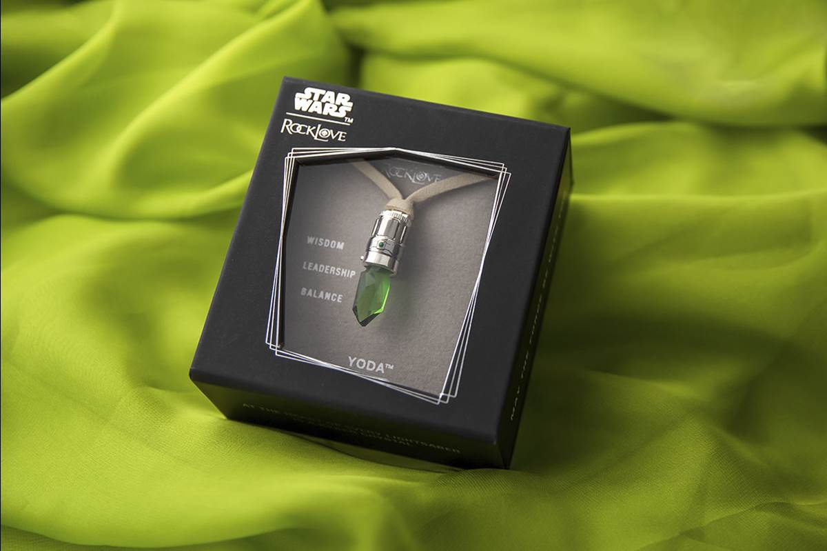 First-to-market Star Wars Celebration Collection including Kyber Crystal necklaces inspired by Mace Windu (Purple), Yoda (Green), Obi-Wan Kenobi (Blue), and Anakin Skywalker (Blue), $150 each
