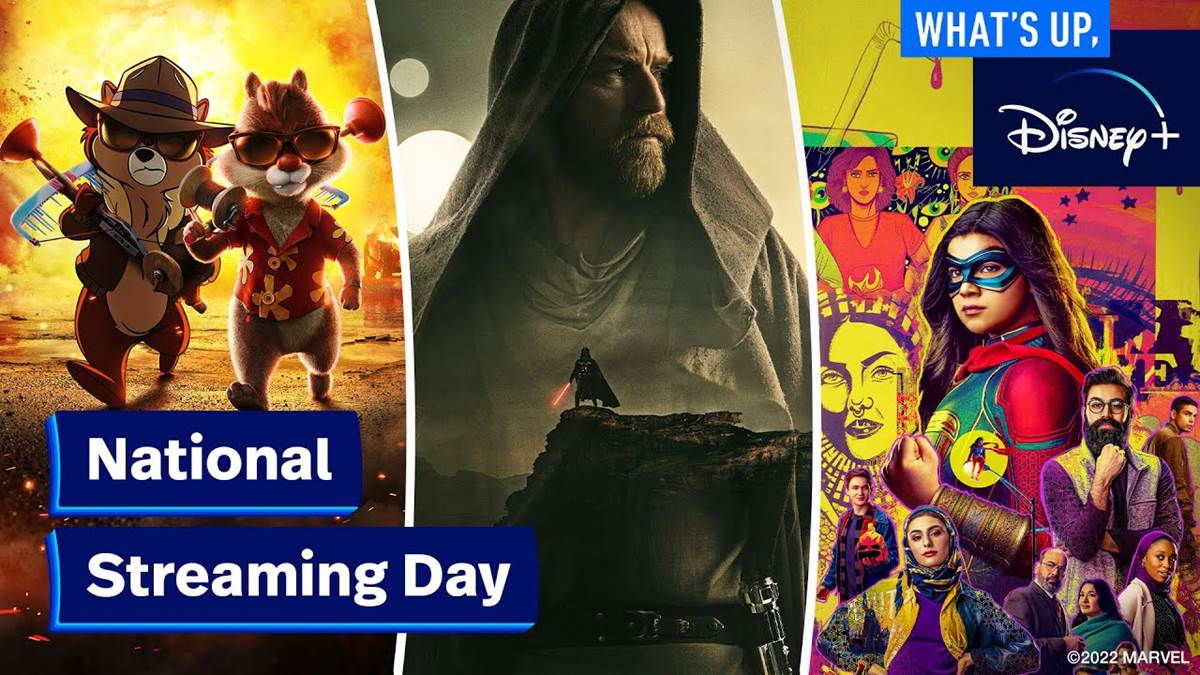 - The celebration of National Streaming Day continues with some “blue carpet" interviews from Bundletown, in addition to a view of the Disney+ drone show that took place in Los Angeles.