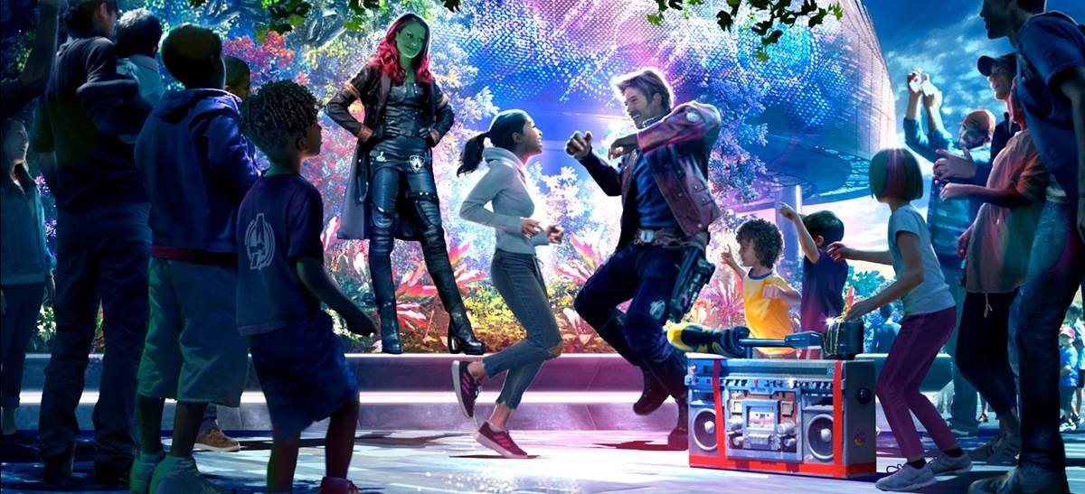 - Avengers Campus will also feature an interactive dance-off with Star Lord and Gamora from the Guardians of the Galaxy.