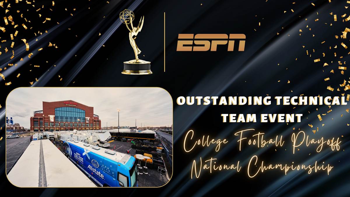 - ESPN’s technical innovation was recognized with Outstanding Technical Team Event for College Football National Championship: Alabama Crimson Tide vs. Georgia Bulldogs, the first win in the category for ESPN.