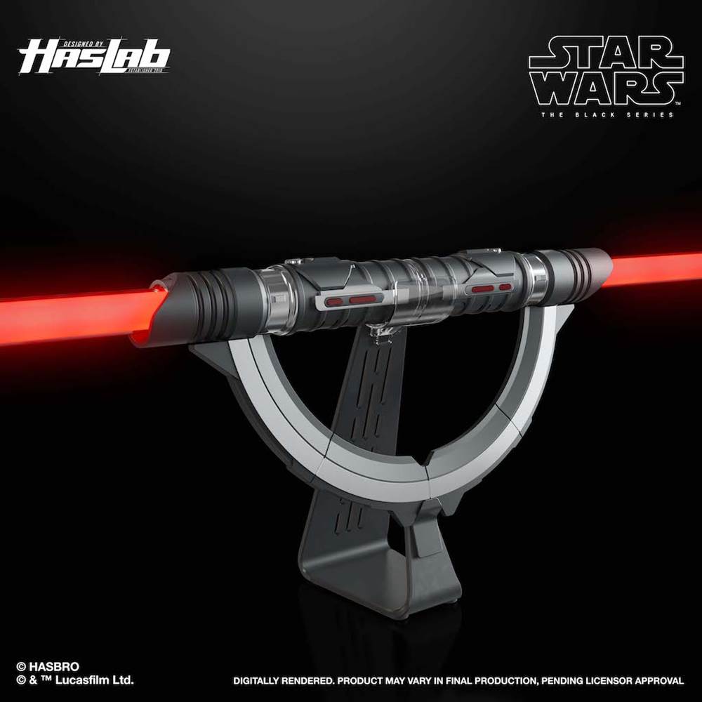 - The new HasLab project is The Black Series’ first integrated double-bladed Force FX Elite Lightsaber. It features duel effects, wall-cut effect, blaster deflect, and comes with a premium stand.