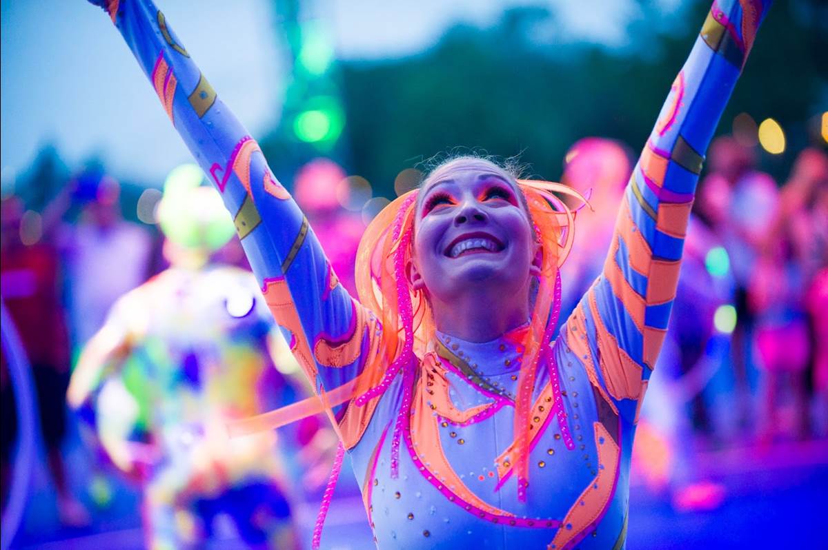 - Electric Floating Acts: Imaginative characters, artists, acrobats, and entertainers roam throughout the park with illuminating costumes and high-energy atmospheric acts.