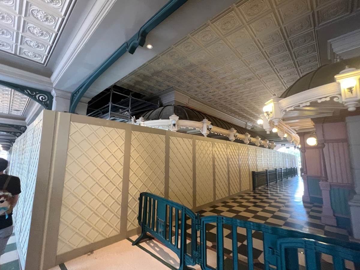 There are also walls up underneath the hotel, which doubles as the entrance and ticket sales area for Disneyland Paris.