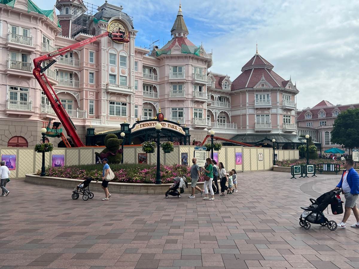 The grand entrance to Disneyland Paris is a little less grand while the refurbishment takes place.
