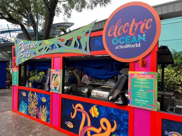 Throughout the day, guests can sip and savor special summer flavors throughout SeaWorld's Electric Ocean. Taste savory summer classics alongside limited-time offering such as beignets, pinchos, and empanadas. Quench your thirst with international and craft brews or one of our refreshing coaster cocktails. All of these added offerings of food and drinks can be found at various special event carts throughout the park during Electric Ocean.