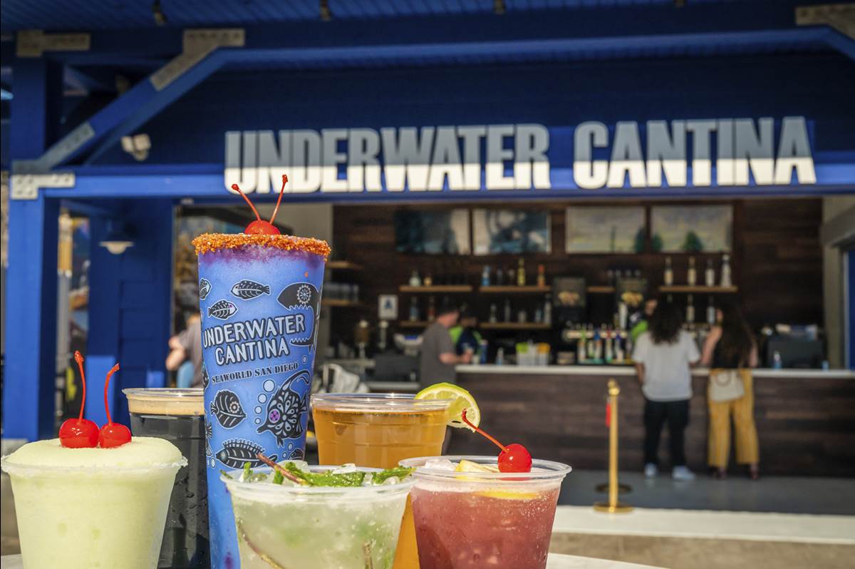 - Underwater Cantina is the perfect new spot for adults looking for a cocktail to wrap up their day long adventure. Guests can relax on the patio and soak in the California sun while sipping on mixologist curated cocktails, such as the Mermaid Margarita or Starr-Berry Mojito, frozen specialties or one of the many mezcal and tequila offerings.