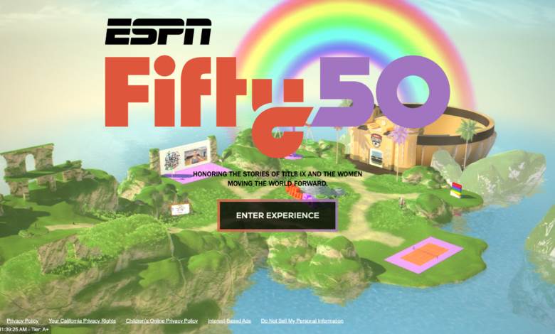ESPN is launching Fifty/50, an interactive and shared 3D world built for inspiration, education, and reflection in a digital destination that amplifies the network’s content around the month of the 50th anniversary of Title IX.