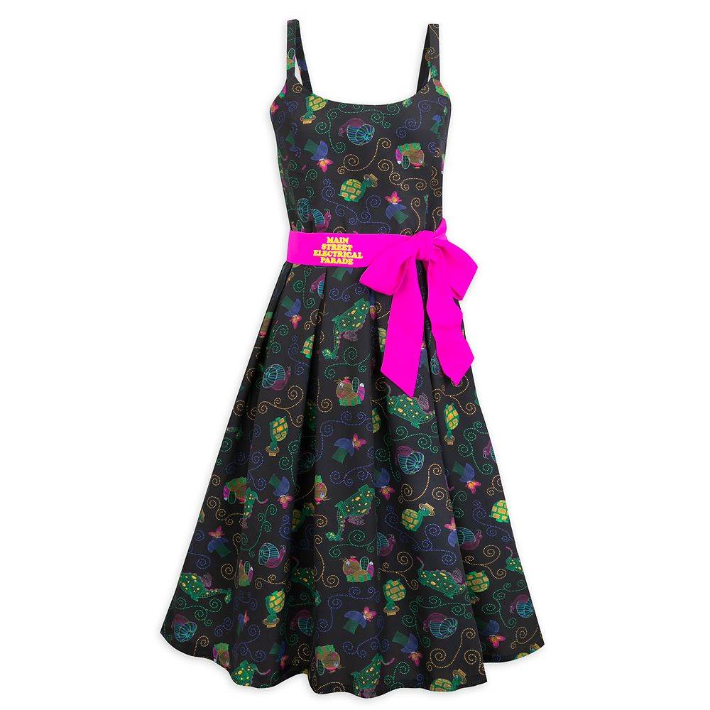 This casual sleeveless dress will become your new favorite! A flowing skirt adds a playful element to the silhouette and you simply cannot miss the bright pink tie waistband that’s embroidered with the Main Street Electrical Parade logo. Oh, and this look also features glowing elements so you’ll be able to dazzle your friends all day long.