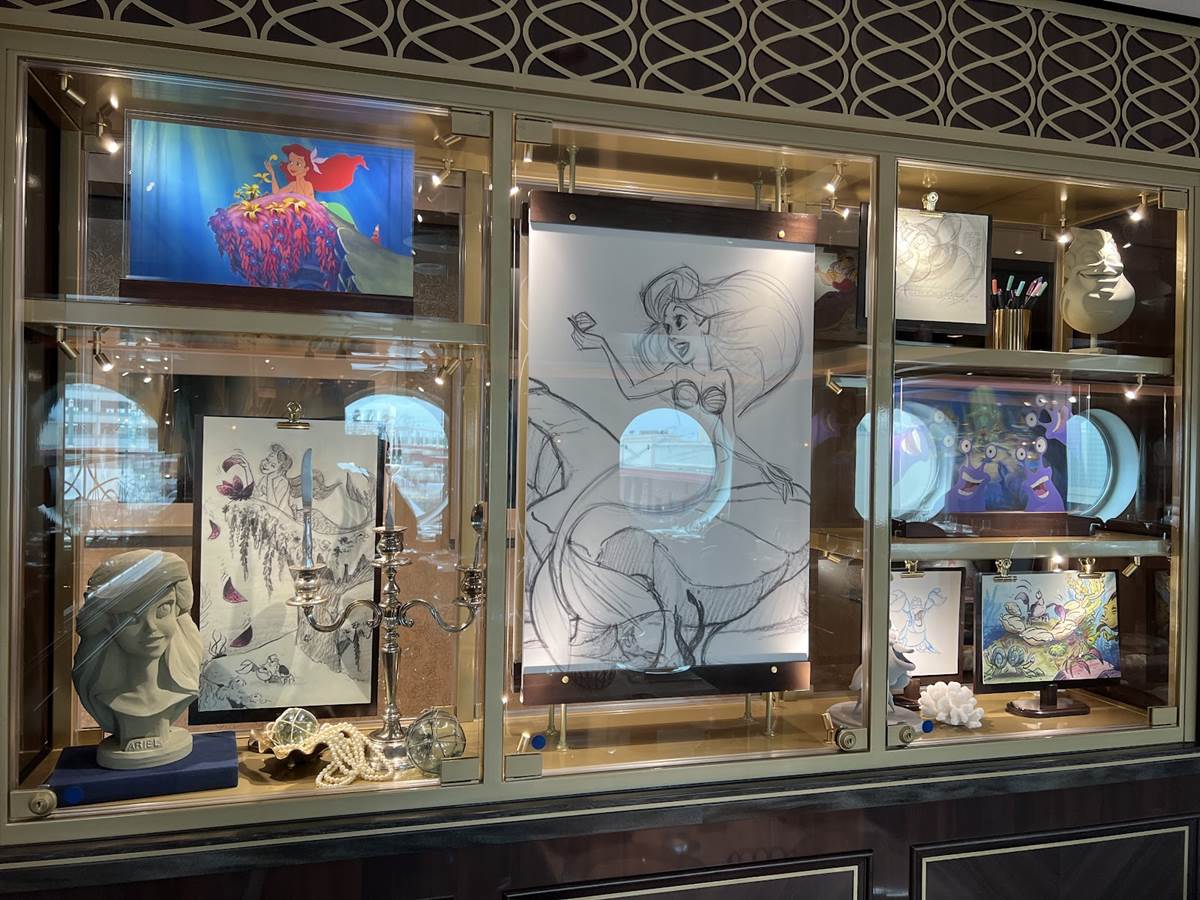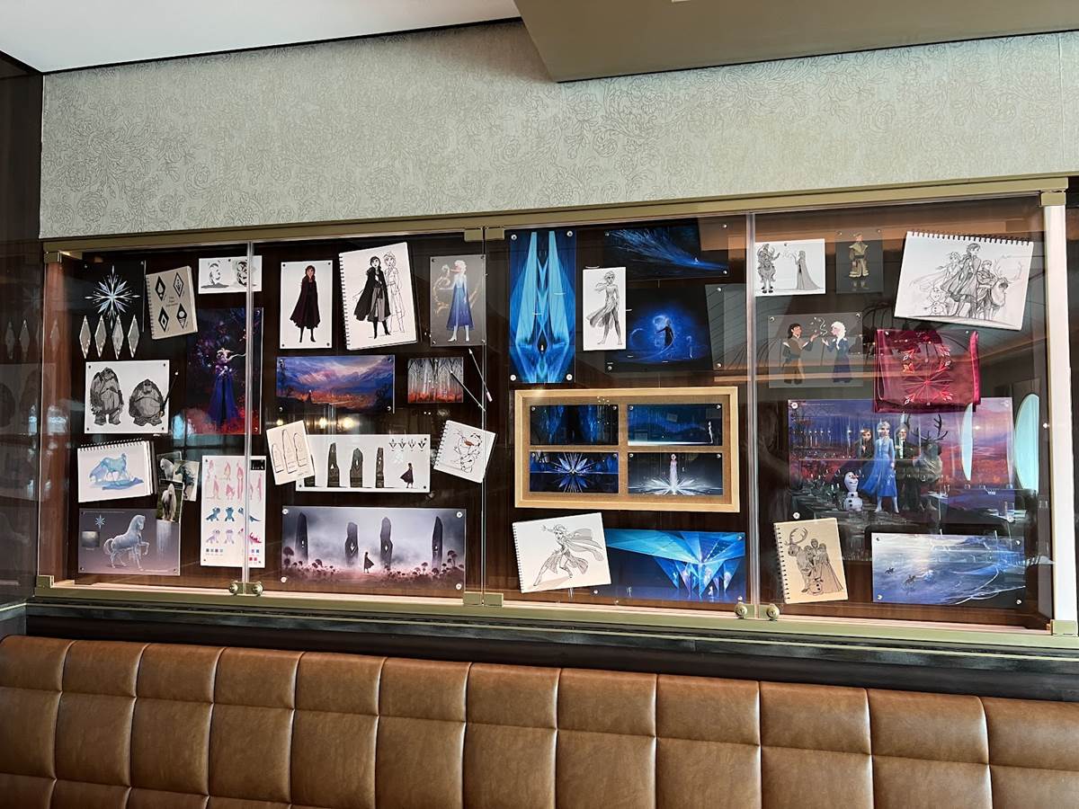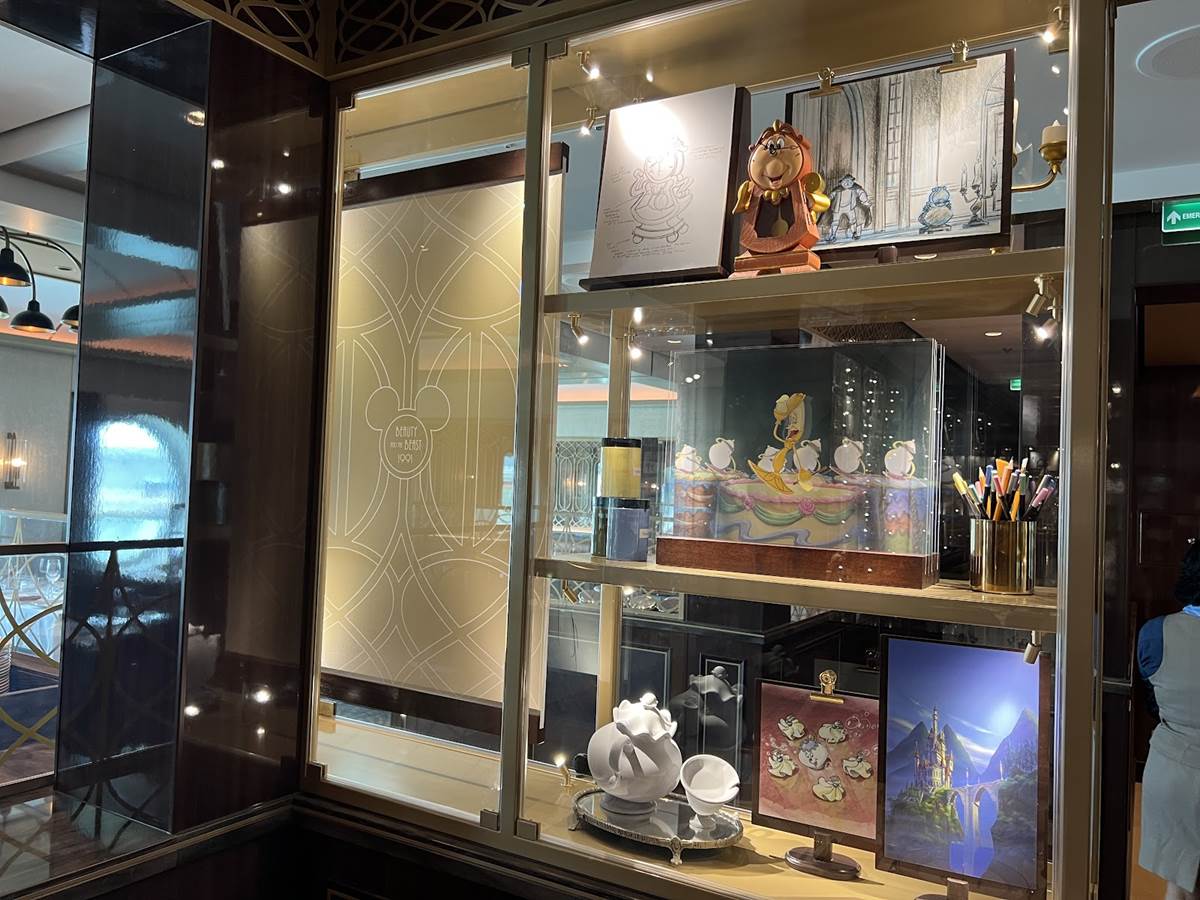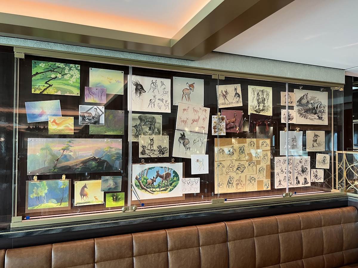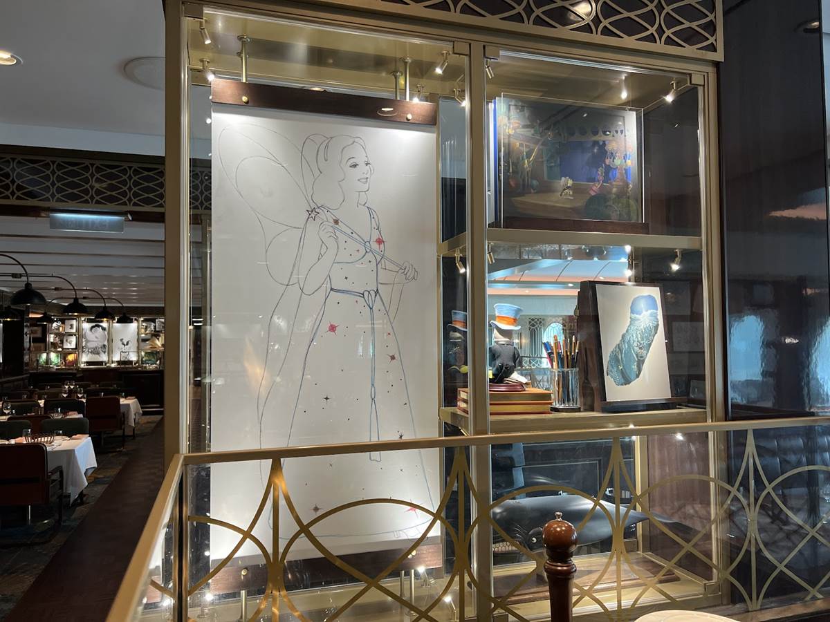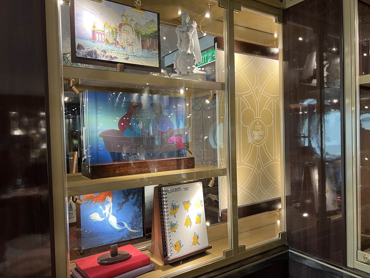 Adorning the walls and ornate glass cases around the restaurant are more than 1,000 drawings, props and other tools of the animation trade showcasing 16 films from the Walt Disney Animation Studio that embody the ship’s themes of enchantment and wish fulfillment. Take a look: