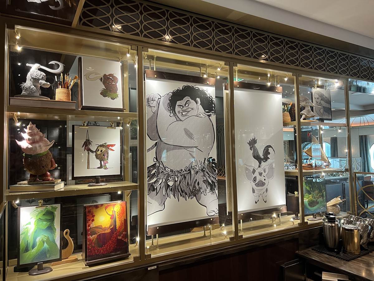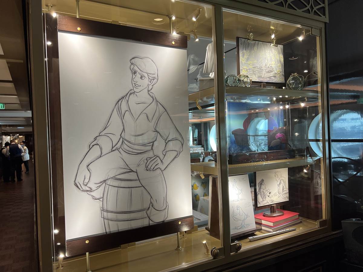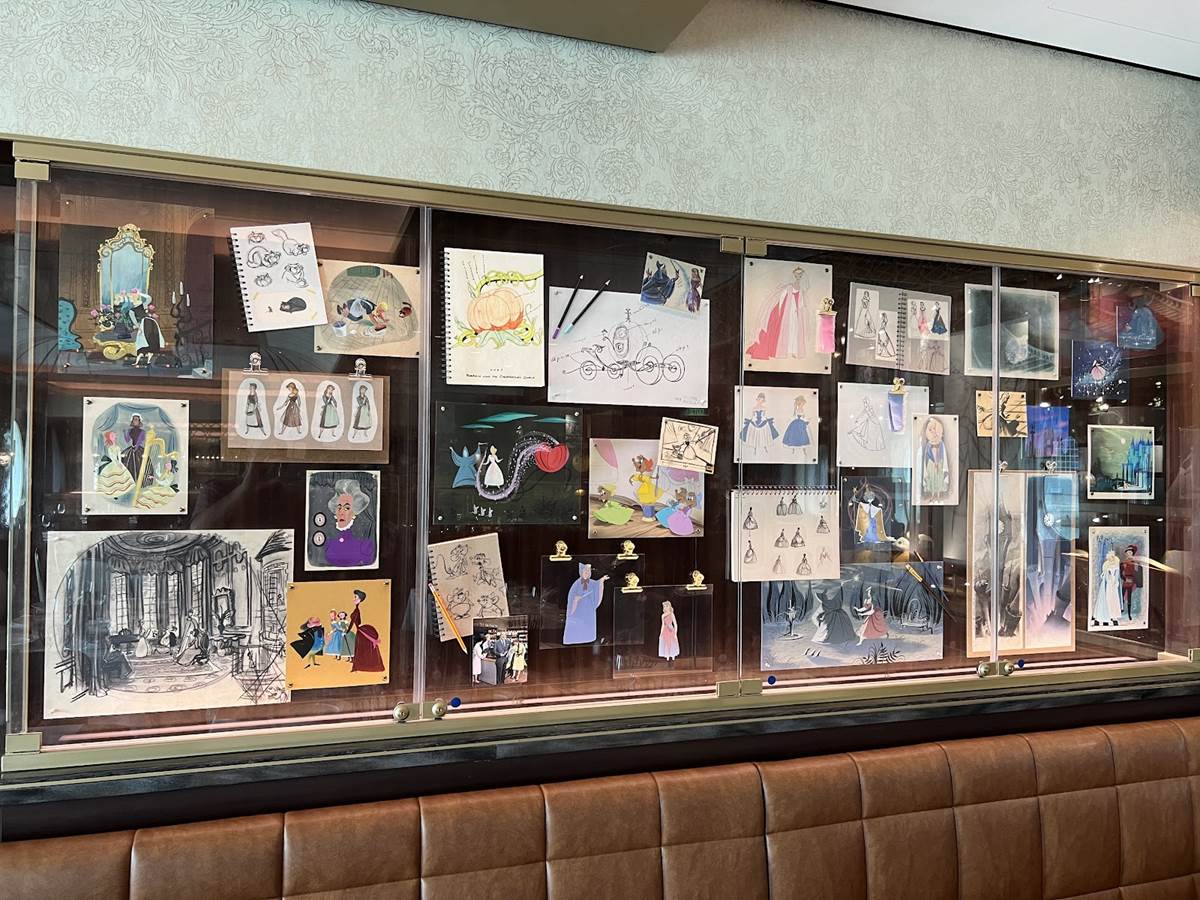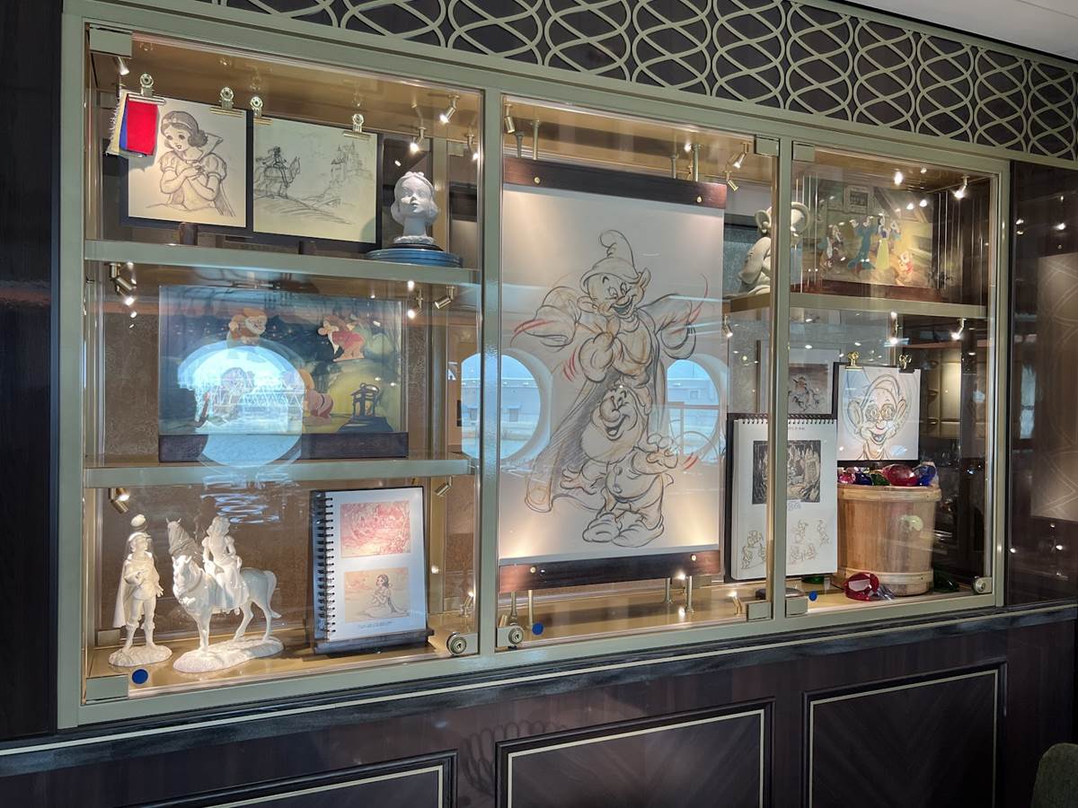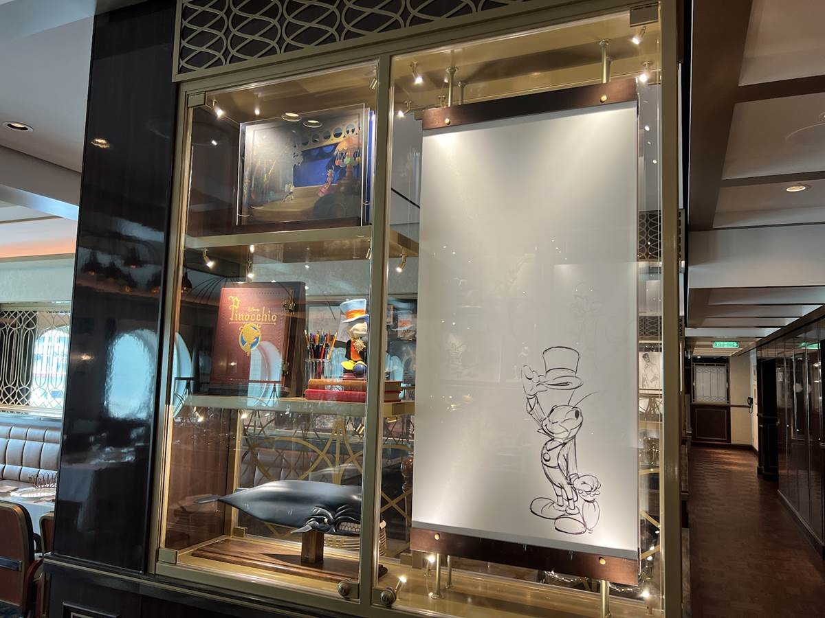 Adorning the walls and ornate glass cases around the restaurant are more than 1,000 drawings, props and other tools of the animation trade showcasing 16 films from the Walt Disney Animation Studio that embody the ship’s themes of enchantment and wish fulfillment. Take a look: