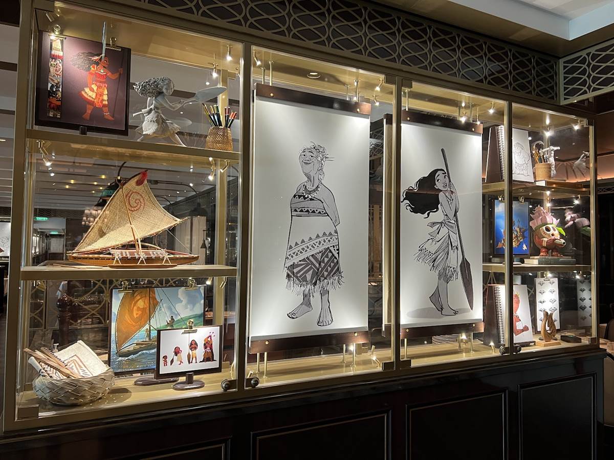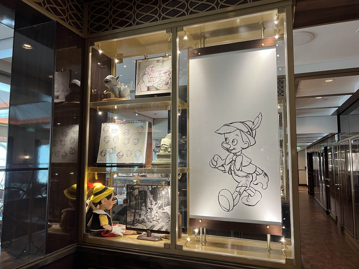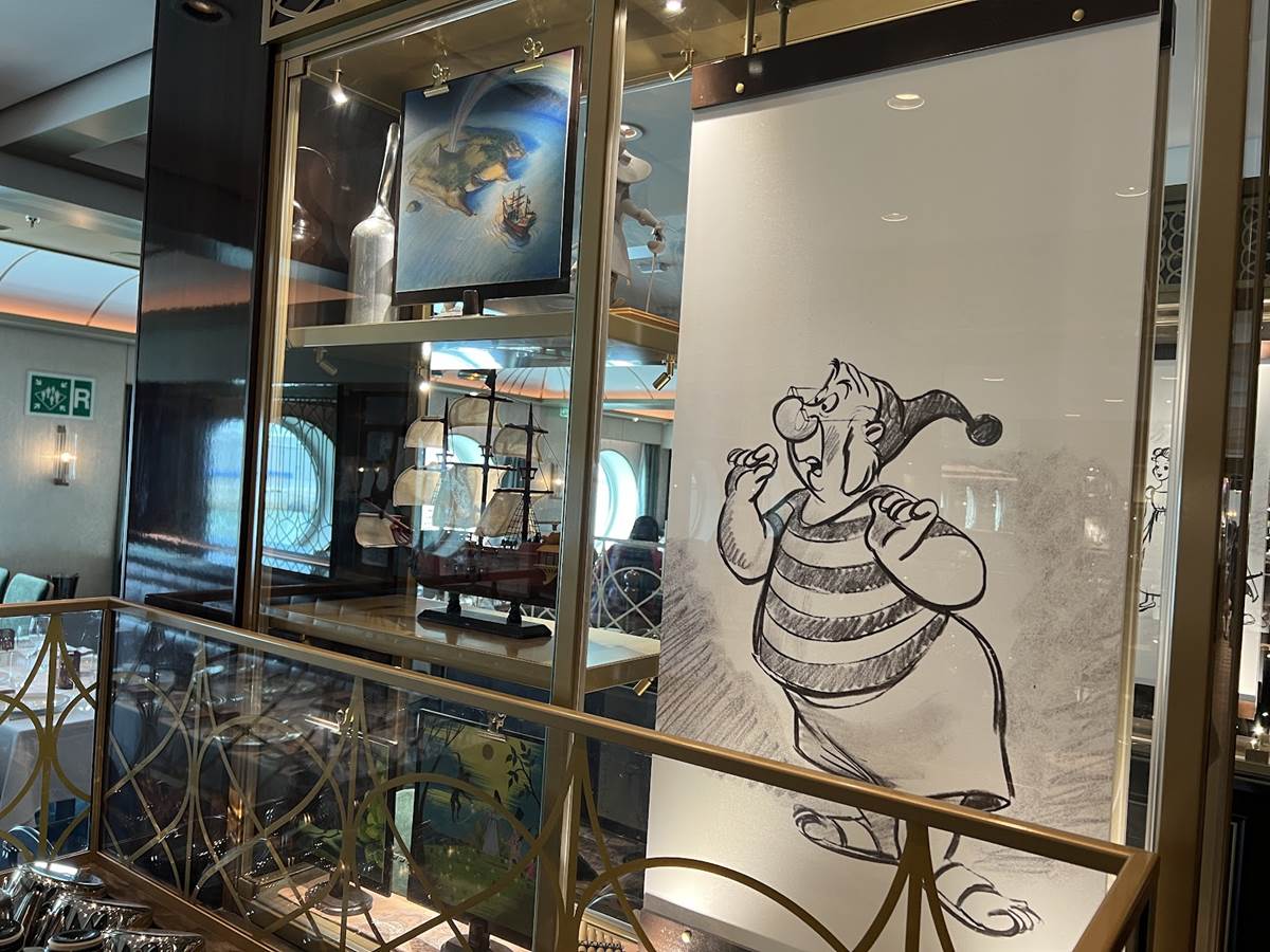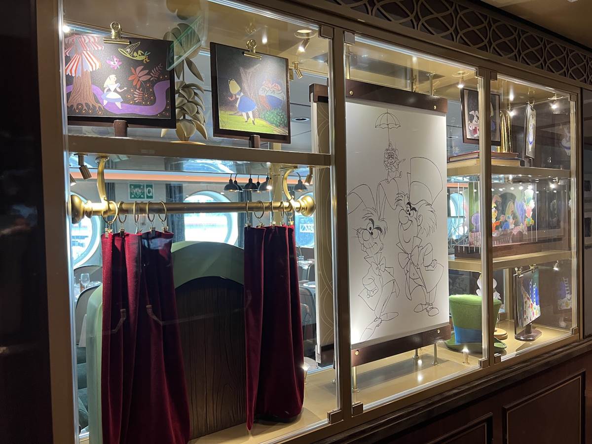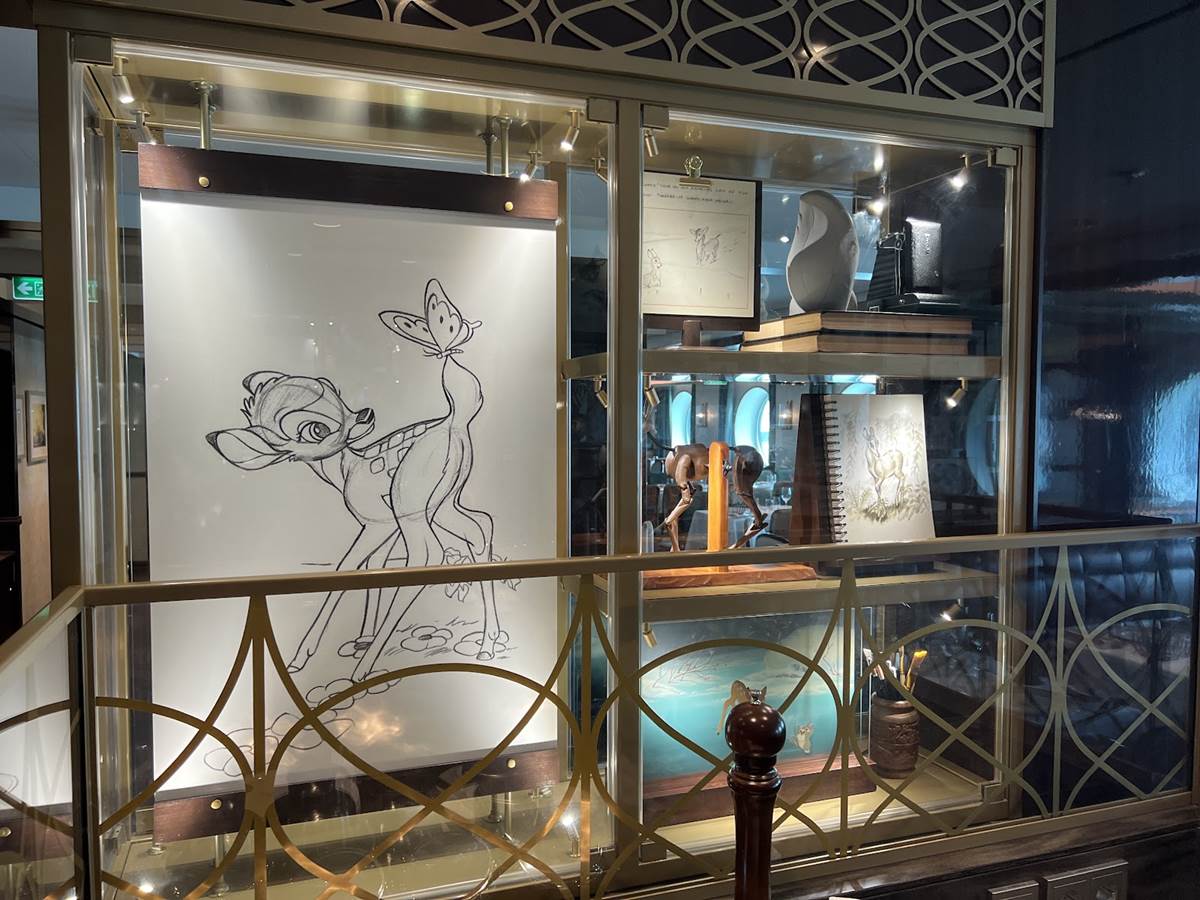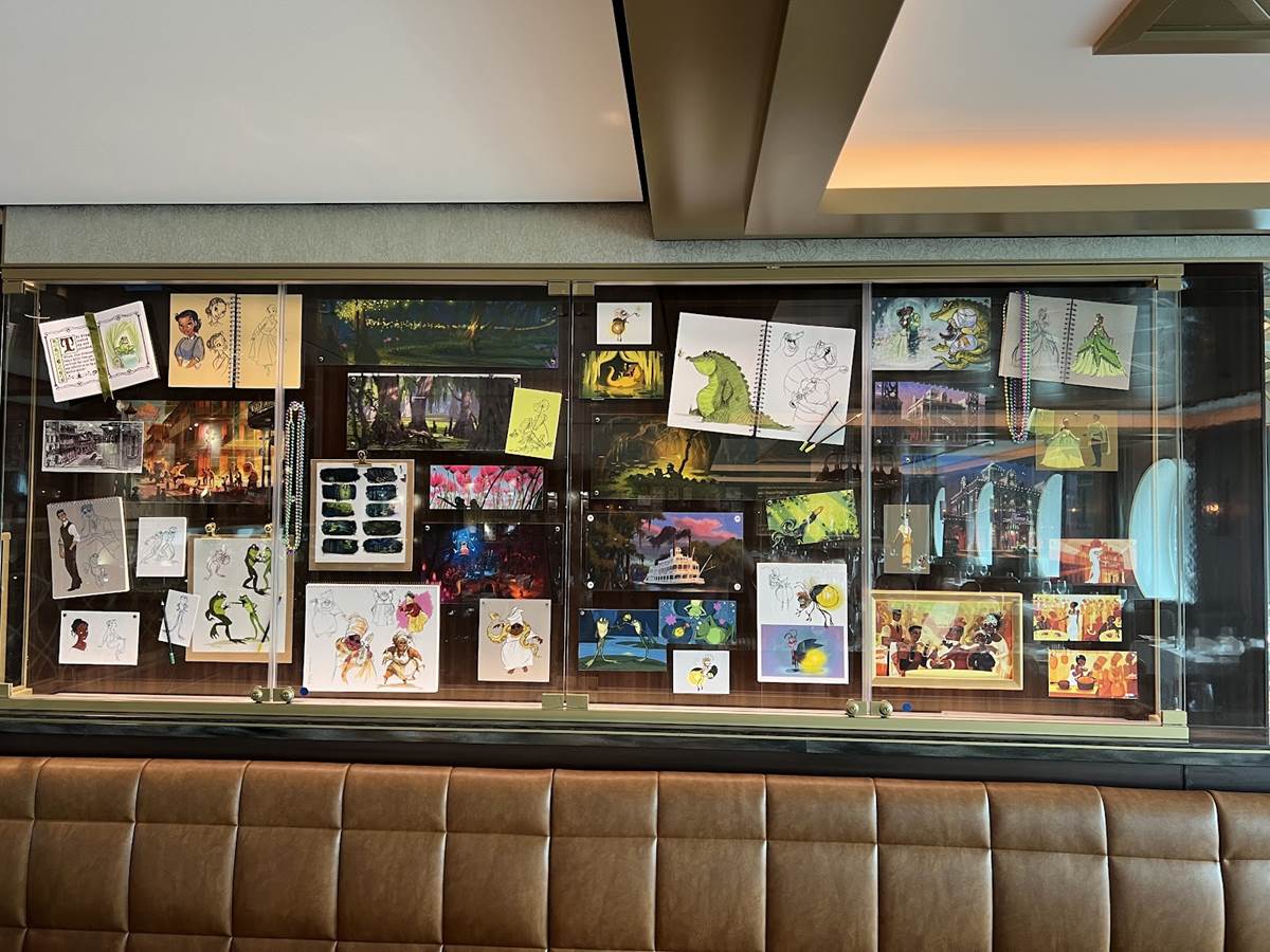 Adorning the walls and ornate glass cases around the restaurant are more than 1,000 drawings, props and other tools of the animation trade showcasing 16 films from the Walt Disney Animation Studio that embody the ship’s themes of enchantment and wish fulfillment. Take a look: