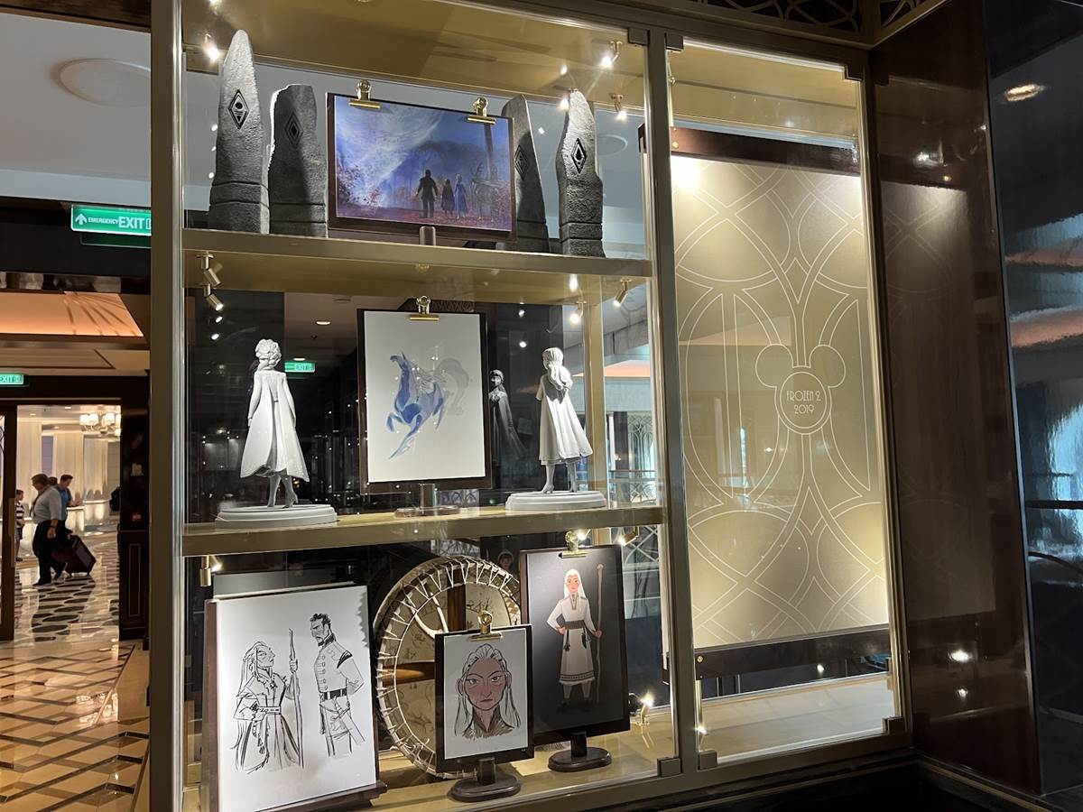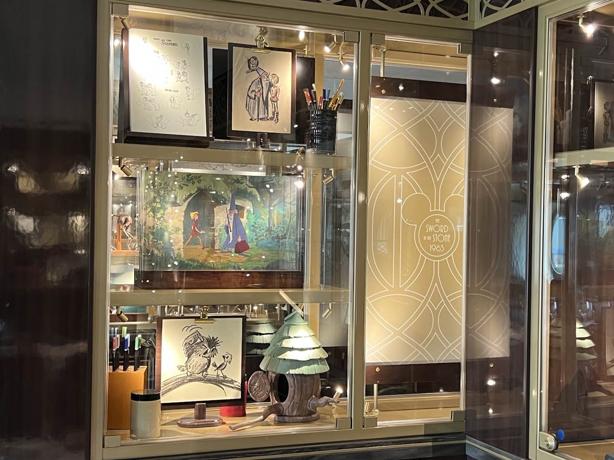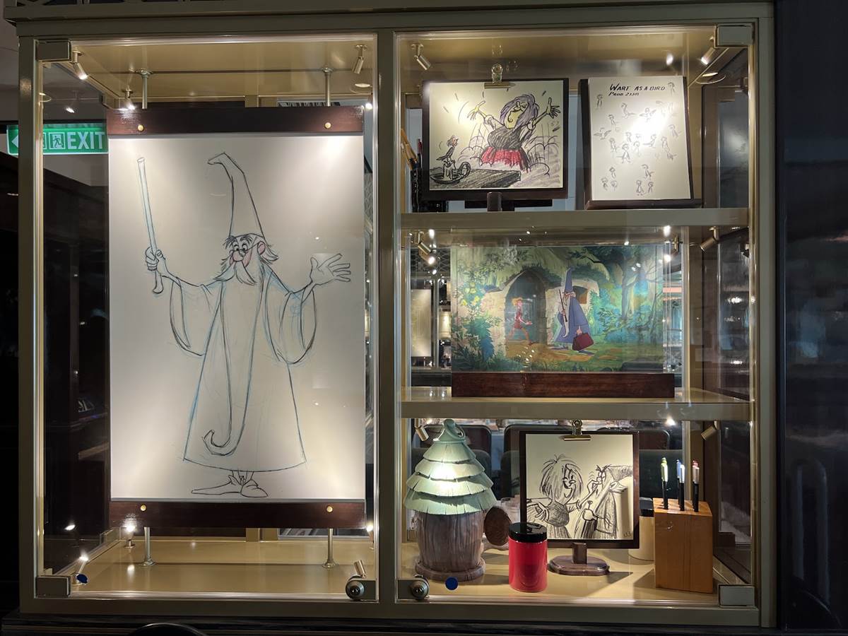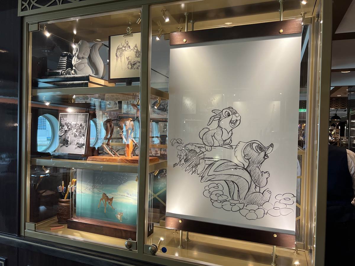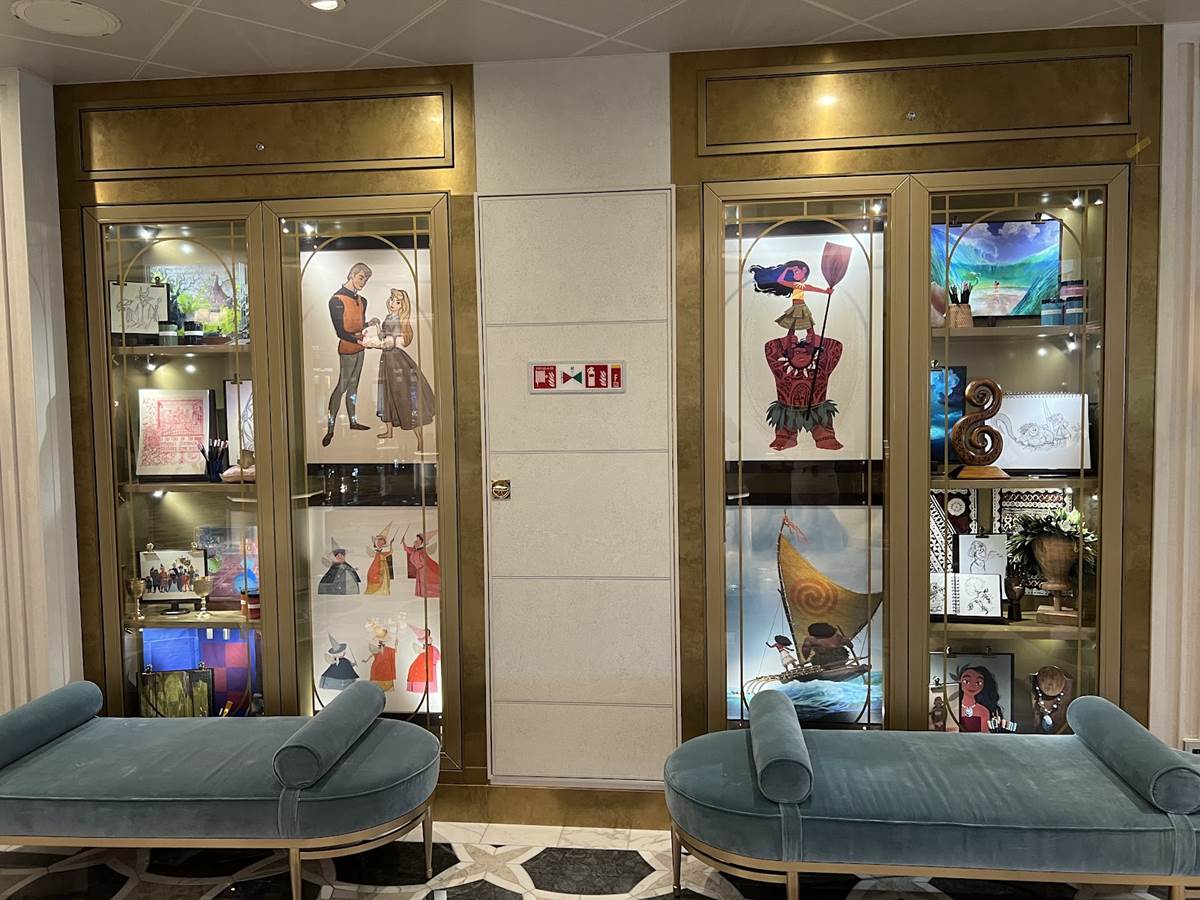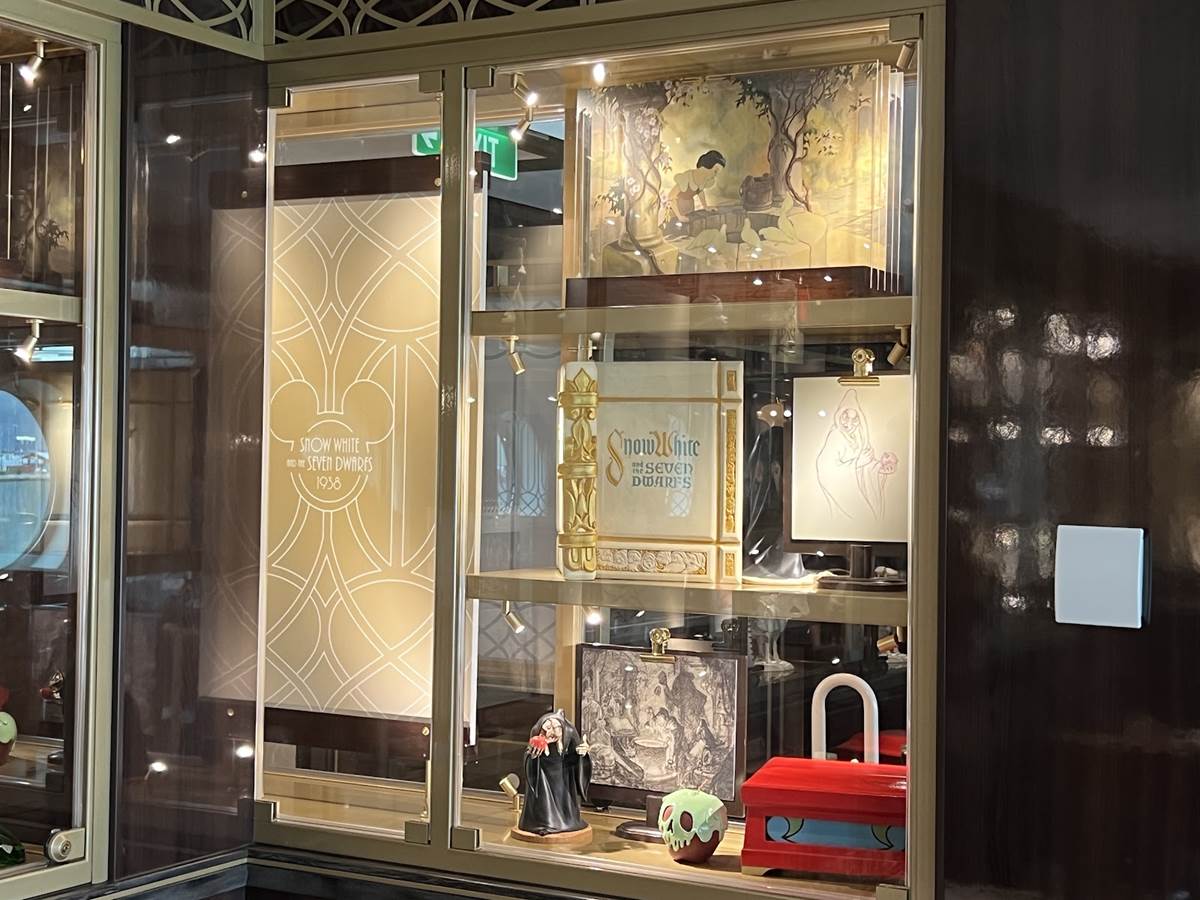 Adorning the walls and ornate glass cases around the restaurant are more than 1,000 drawings, props and other tools of the animation trade showcasing 16 films from the Walt Disney Animation Studio that embody the ship’s themes of enchantment and wish fulfillment. Take a look: