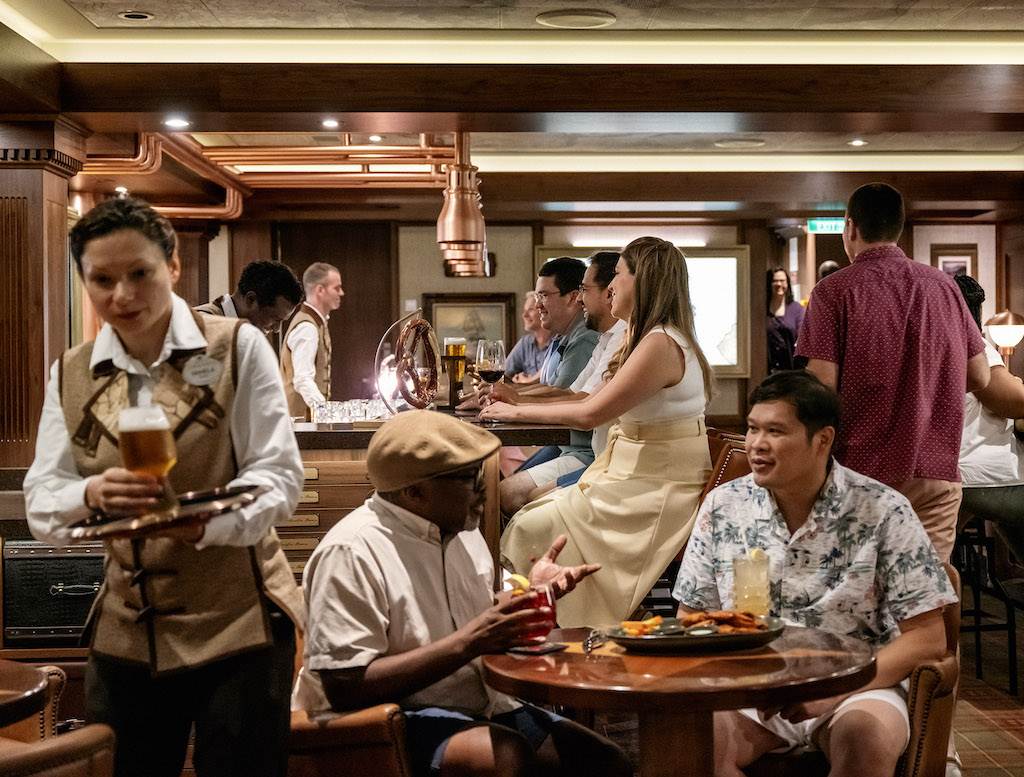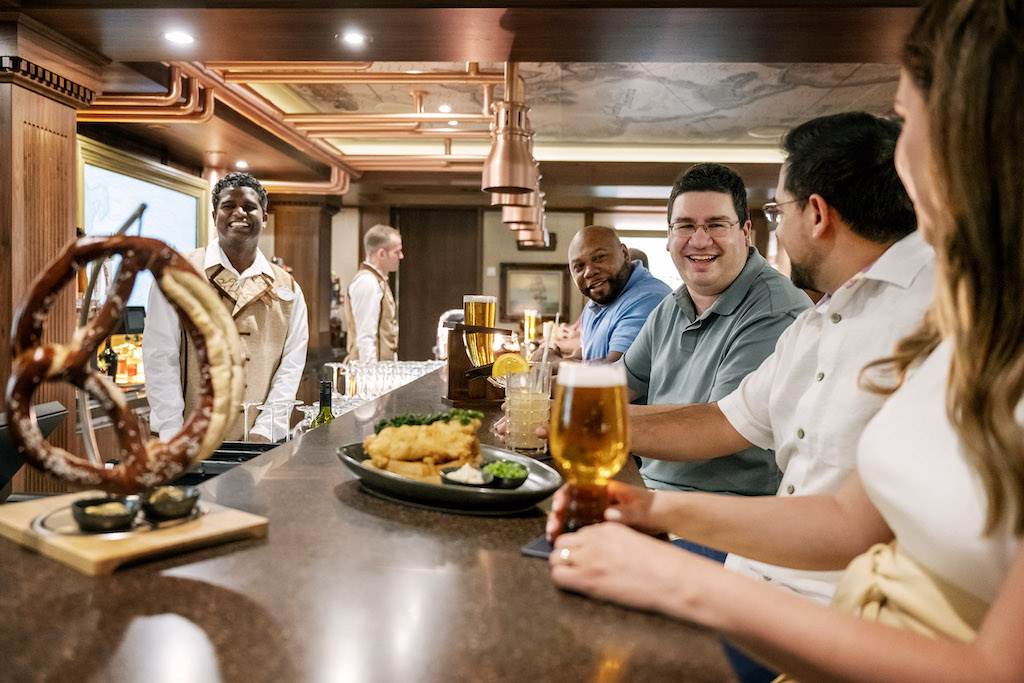 “The Keg & Compass pub aboard the Disney Wish celebrates the adventure and romance of the sea, evoking the rustic style of a late-1800s Norwegian sailor’s map room. The casual setting offers live sports on large TVs, a special selection of beers, an assortment of liquors, wines and cocktails, and pub fare."