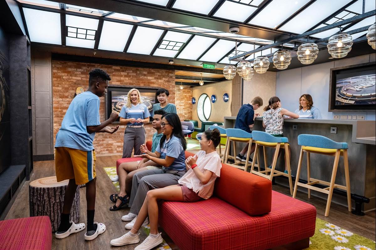 - Teens ages 14 to 17 years old have their own dedicated club on the Disney Wish. Called Vibe, this stylish space is inspired by a French artists’ loft with classic architecture, vibrant neon signs and funk pop art, including a selfie-worthy Mickey Mouse statue.