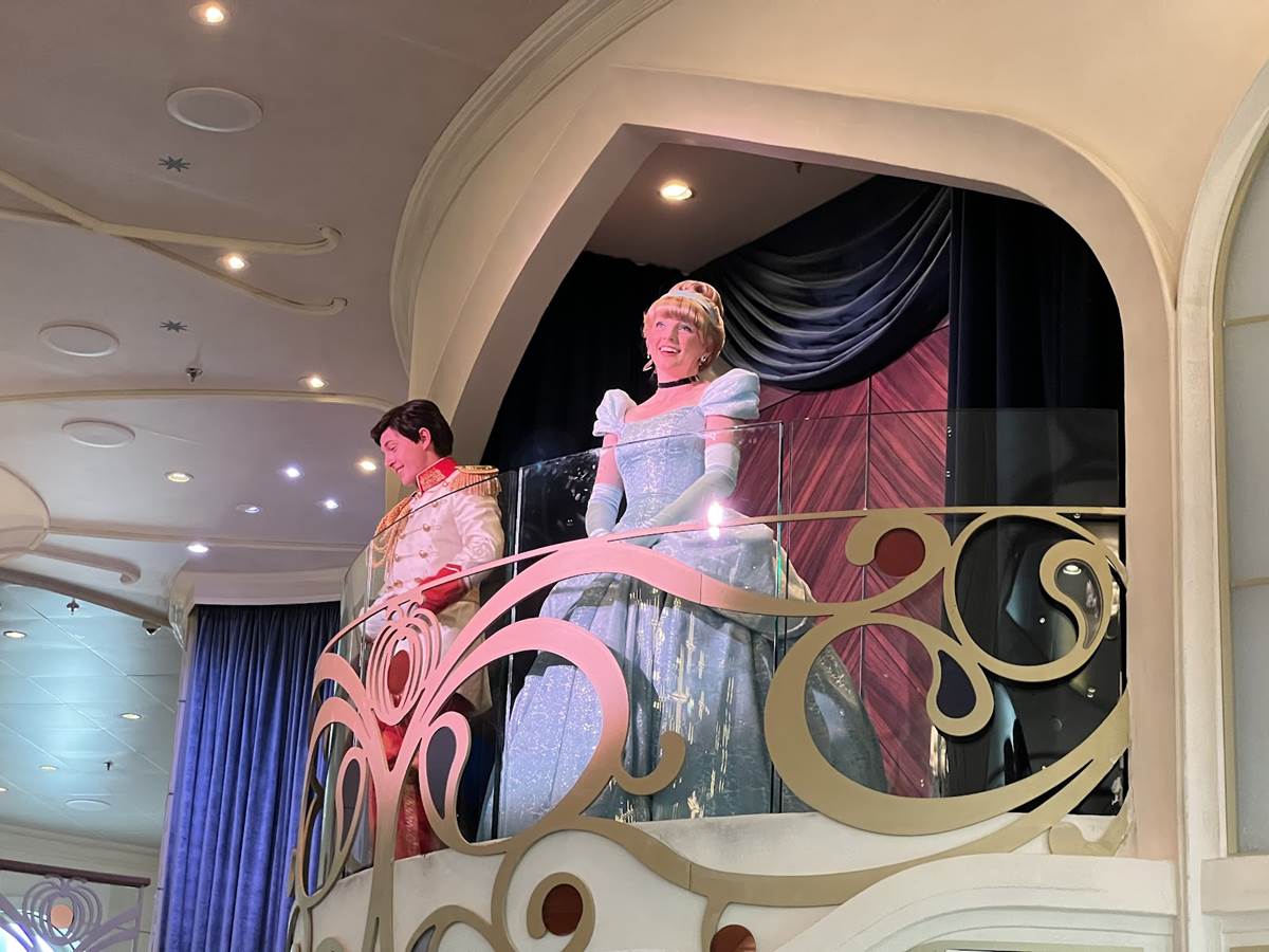 Passengers will also find characters welcoming them aboard the ship from a balcony above a stage in the Grand Hall.