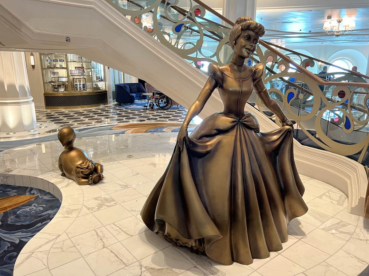 As other Disney Cruise Line ships feature a statue in each atrium, the Grand Hall is no different, with a statue of Cinderella (and friends!) welcoming those aboard.