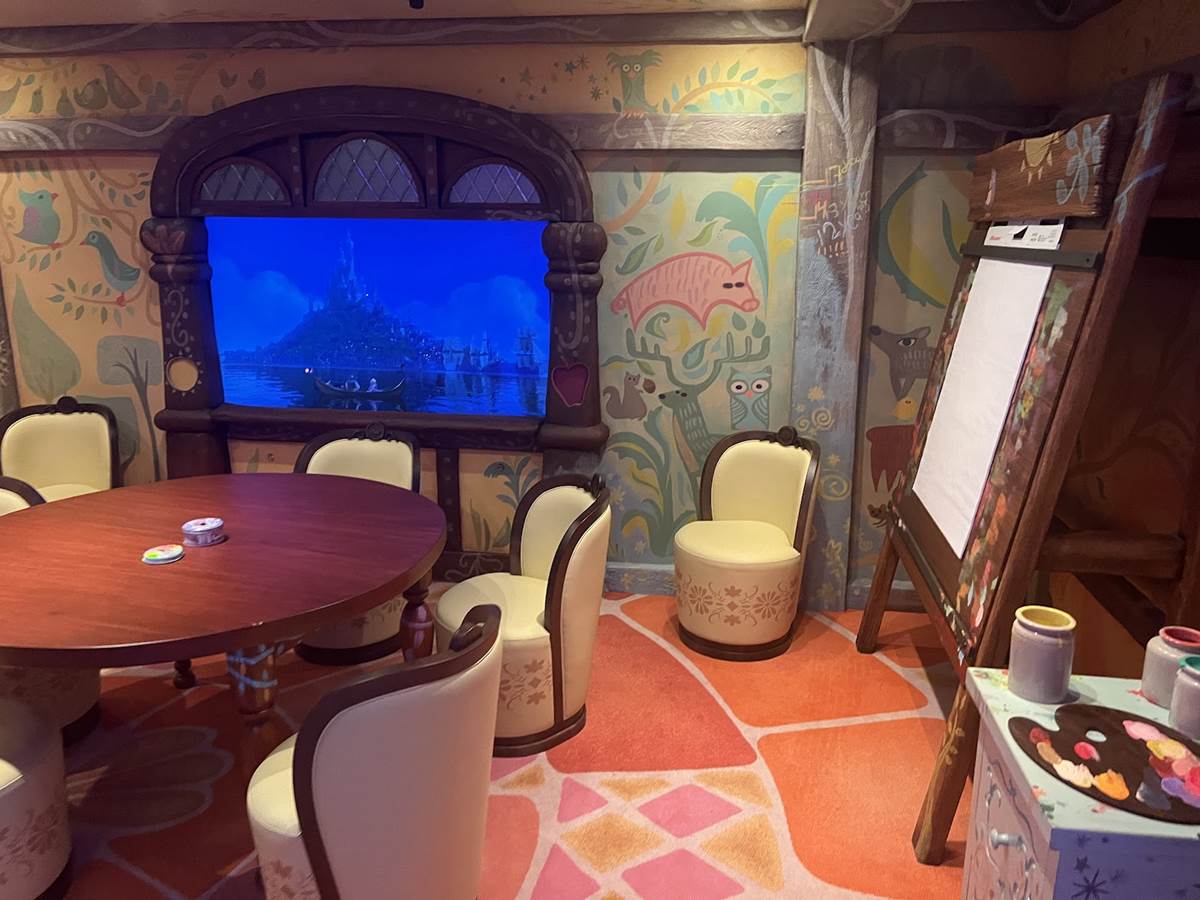 Belle’s Library will be a cozy corner for reading and acting out stories with the help of Disney characters. An enchanted painting above the fireplace will magically transform to bring the tales to life