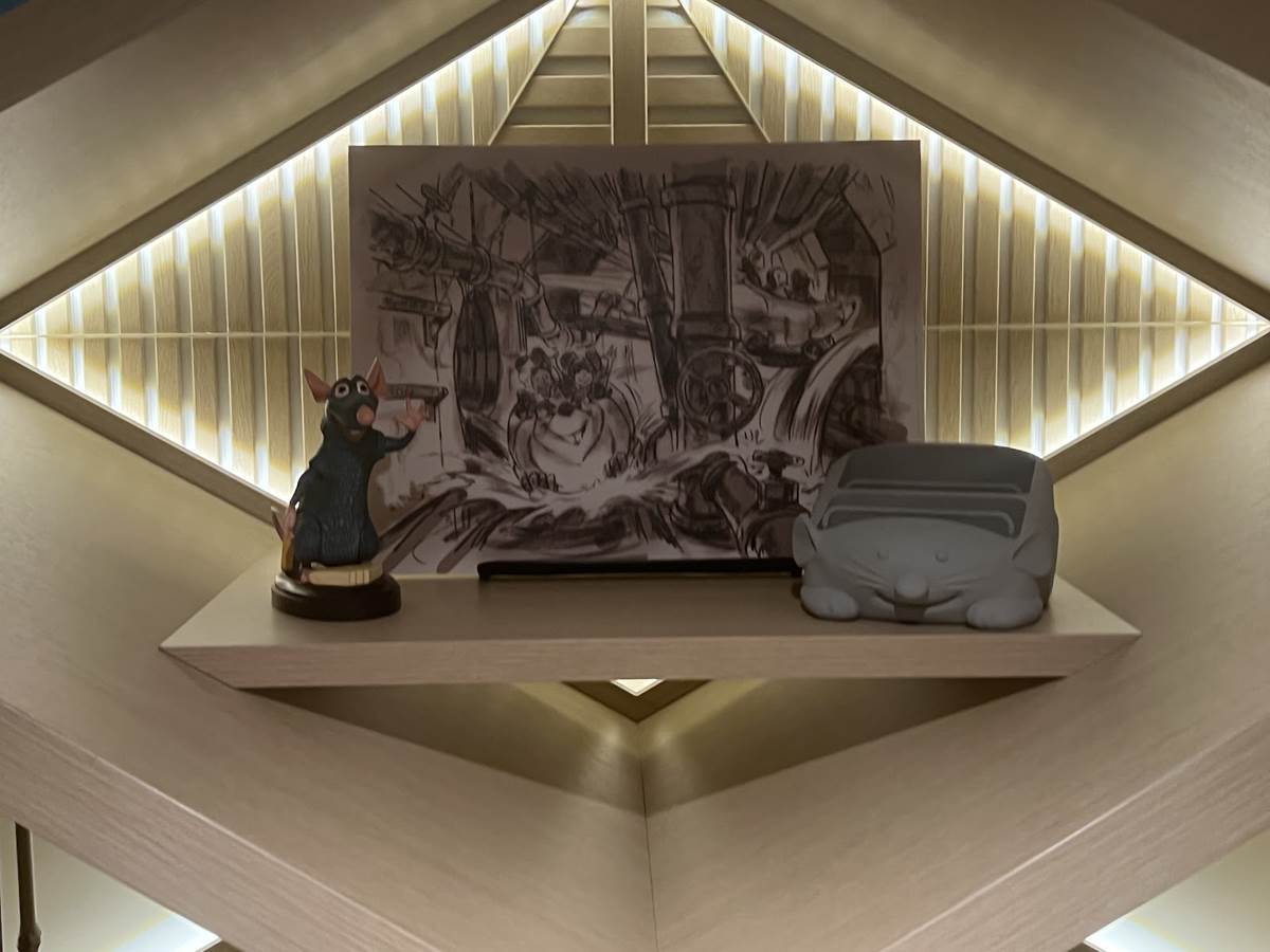 In the play room, magical murals will feature interactive hand cranks that trigger delightful effects. Little ones will be able to spark a cascade of ice magic from Elsa’s hand, send Aladdin and Jasmine swaying on the magic carpet, uncover Flynn Rider as he clings to Rapunzel’s enchanted tresses, and more. A toy train will chug along the ceiling, filling the space with colorful lights, playful sounds and kinetic energy.