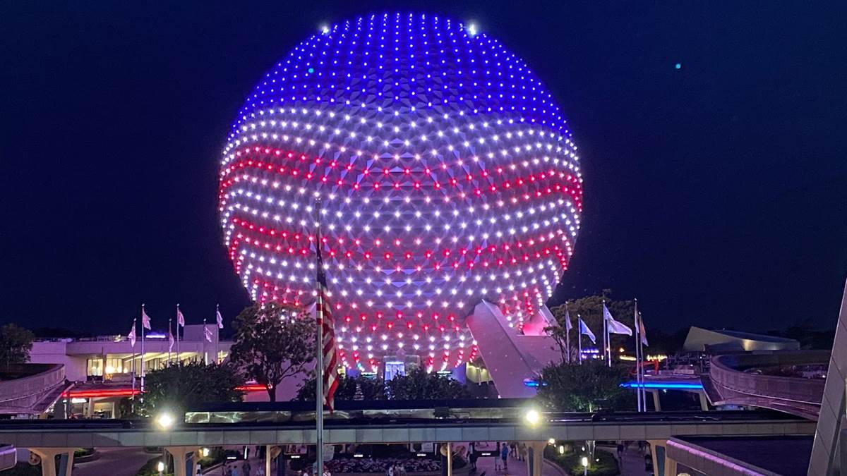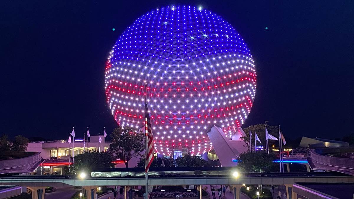 - “Spaceship Earth is ready to shine brightly with a very limited-time ambient lighting design celebrating Independence Day."